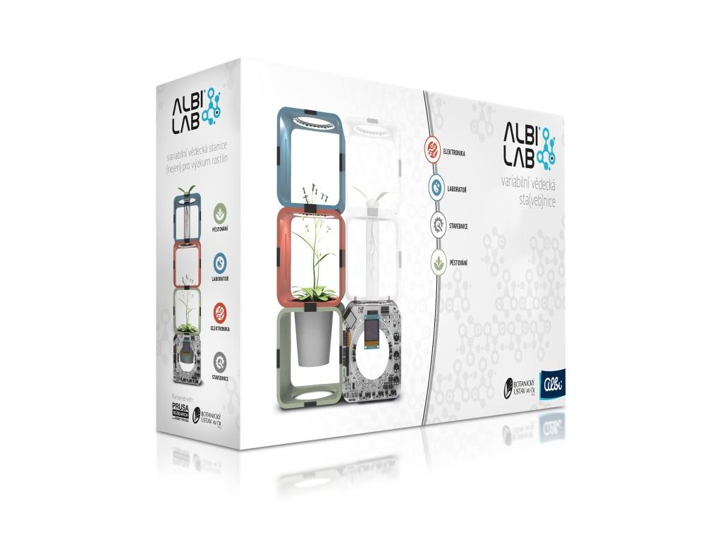 Vítejte ve fascinujícím světě rostlin a vědy, kde se spojují inovace a zábava! Se sadou AlbiLAB máte příležitost vytvořit si vlastní vědeckou stanici s magnetickými kostkami a programovatelnou elektronikou. Projekt vznikl ve spolupráci s Botanickým ústavem AV ČR a společností Prusa Research. Více informací naleznete na webových stránkách konceptu AlbiLAB. Sada obsahuje: středový modul = stojan na zkumavky, semínka Huseníčku rolního, barevný TFT LCD displej (1,54”), nožík, vědecký deník, návod k sestavení, řídicí desku (1×), LED kroužek (2×), propojovací kabely (9×), čelní kryt s otvorem (3×), čelní kryt čirý (6×), čelní kryt černý (6×), samolepicí pokovené pásky, smirkový papír (2×), děrovač, osky trimrů (4×), krytku LED, powerbanku 20 000 mAh (1×), kabel USB – USB-C (1×), adaptér 5V/2A (1×), síťku (3×), víčko na zkumavku (3×), zkumavku (3×), lupu, pinzetu, Petriho misku (2×), pH papírky, kádinku 100 ml, střičku 150 ml, pipetu 5 ml, magnetickou kostku – pěstební komoru pro rostliny (4×), redukci na zkumavku (2×), pěstební nádobu (2×), substrát a zeolit.
