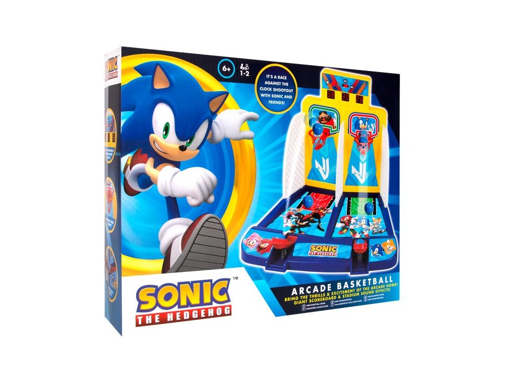 Arcade Basketball propojuje klasický basketbalový arkádový styl s ikonickou grafikou a zvuky Sonica. Hráči házejí míčky pomocí pružinových střílen do košů během časově omezených kol, s cílem dosáhnout nejlepšího skóre. Elektronický LED displej zobrazuje časovač a body. Barevná světla, efekty a licencovaná tématika zajišťují autentický arkádový nádech. Hra je ideální domácí zábavou pro děti od 6 let. Hra obsahuje: herní základnu se 2 mechanismy na střílení míčků, LED displej skóre s časovačem, 6 míčků (basketball), návod.