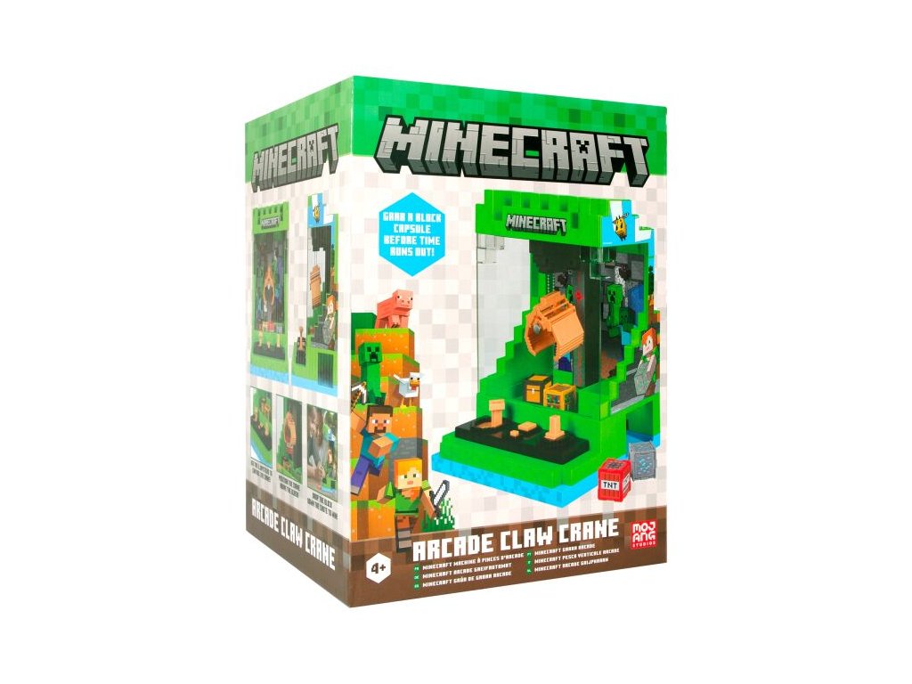Minecraftem inspirovaný stolní jeřáb Arcade Crane – chytněte kapsli, zasoutěžte si s přáteli a užijte si ikonickou grafiku i s hudbou! Hráč ovládá joystick a snaží se pomocí raménka chytit kapsli s odměnou dřív, než čas vyprší. Hra obsahuje: stolní model arkády s mikro-jeřábem a ovládacím mechanismem, plastové odměny, návod.