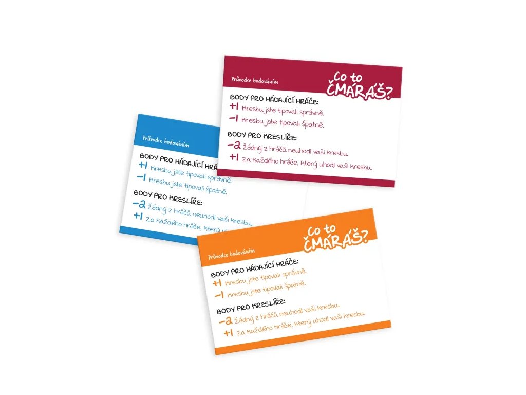 Ve hře Co to čmáráš vůbec nezáleží na tom, zda umíte dobře kreslit, či nikoliv. Náhodně si vylosujete číslo 1, 2 nebo 3 a vaším úkolem bude nakreslit odpovídající pojem z karty (např. 1. stíhačka, 2. tryskáč, 3. letadlo). Poté musíte tipovat, co kreslili ostatní hráči. Body získáváte za správné hádání. Ale i za to, když váš obrázek uhodne někdo jiný. Hra obsahuje: 137 karet se slovy, 63 barevných žetonů s čísly, 9 černých žetonů s čísly, 7 přehledových karet, 7 tužek, přesýpací hodiny a pravidla.
