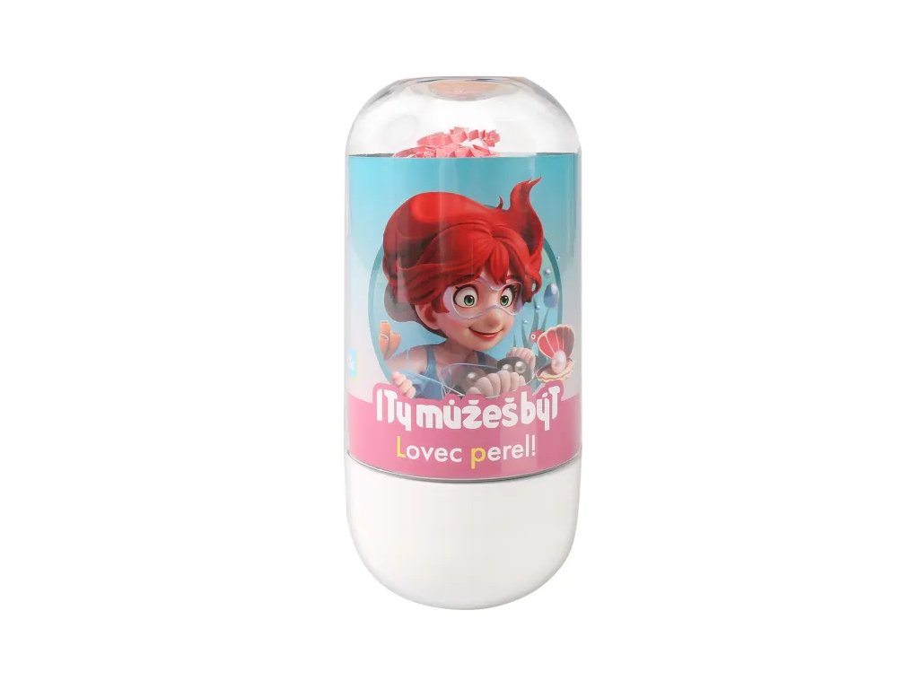 Vylovte poklady z mořského slizu, objevte perly a vytvořte perlový náramek a sponku. Sada Lovec perel je jednou z 12 vzdělávacích sad I ty můžeš být, která dětem představuje různá povolání. Sada obsahuje: 1 dláto, 1 štětec, 1 blok na kopání, 1 modrý sliz, 2 lepíky, 1 mořskou pannu, 1 sponku, 1 šňůrku na náramek, 1 nášivku Lovce perel, návod.