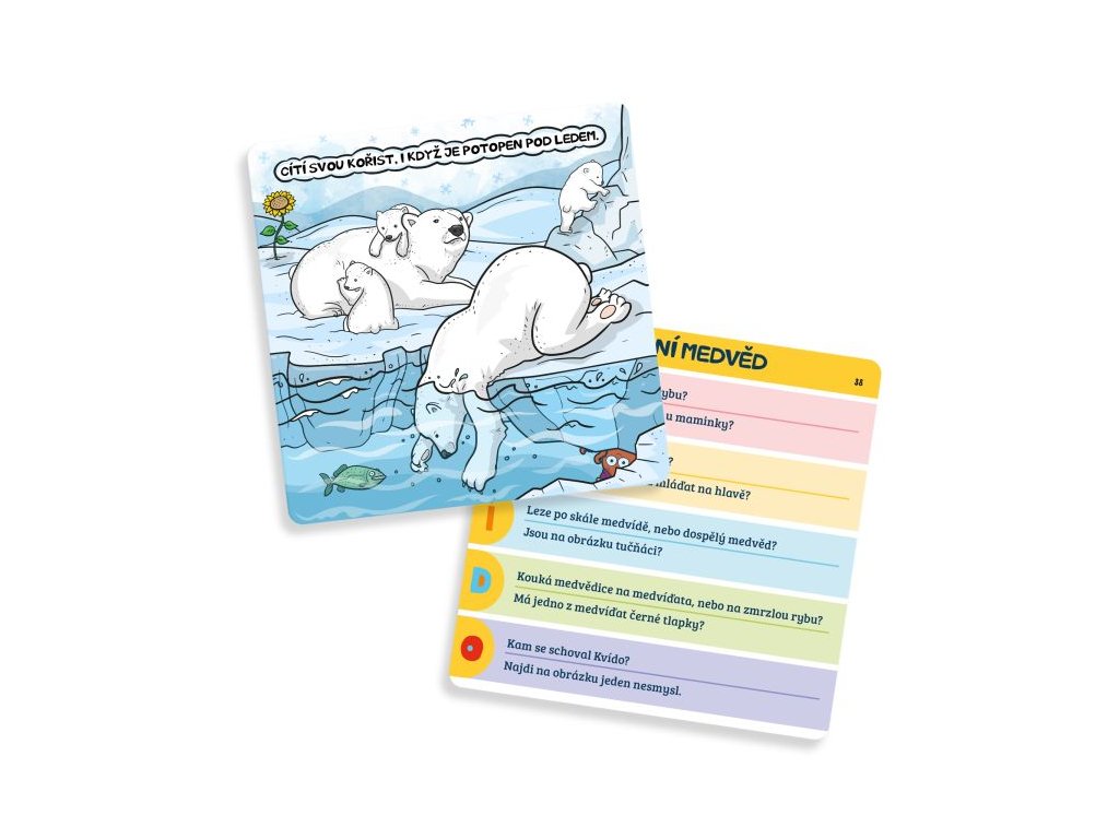 Rychlá paměťová hra Kvído v kostce ze světa zvířecích mláďat i s hrou Kvídova paměťovka, která zapojí najednou všechny hráče do hry. Na ilustrovaných kartách jsou znázorněny informace na téma mláďata. Hráči mají patnáct vteřin, aby si z vybrané karty zapamatovali co nejvíce, a zvládli odpovědět na jednu až dvě vylosované otázky. Hra obsahuje: 60 ilustrovaných karet s otázkami, 20 oboustranných bonusových karet pro Kvídovu paměťovku, 4 bodovací karty, 32 obrázkových žetonů pro bonusový úkol, 40 bodovacích žetonů, přesýpací hodiny na 15 sekund a 1 Kvídovu hrací kostku.