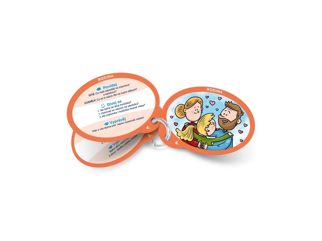 Na 40 oboustranných, obrázkových kartách najdete 200 otázek, které slouží k otevřenému povídání v rodině, vzájemnému poznávání, trénování postřehu, vyprávění a výzvám. Rodinné povídačky od Kvída obsahují: 40 oboustranných, obrázkových karet s 200 otázkami, 1 praktická kovová karabina.