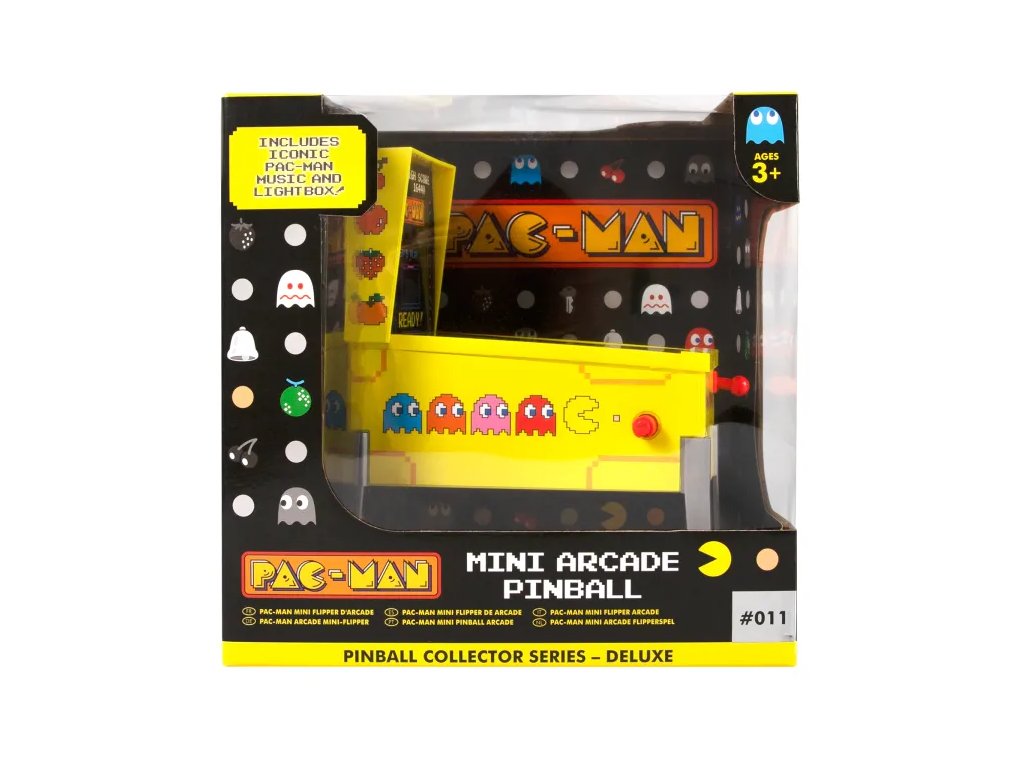 Stolní pinball je vybaven elektronickým LED displejem pro zobrazení skóre, barevnými světelnými efekty, bonusovými tunely a zvukovou kulisou. Skóre se ukládá automaticky a hráči se střídají ve snaze dosáhnout co nejvyššího výsledku. Motiv Pac-Mana zaujme děti od 6 let. Hra obsahuje: kompaktní pinballovou plochu s bumpery, elektronické skóre s velkým LED displejem a automatickým detekováním ztracené koule, výrazné barevné LED osvětlení a zvukové efekty, koule pro pinball, návod.