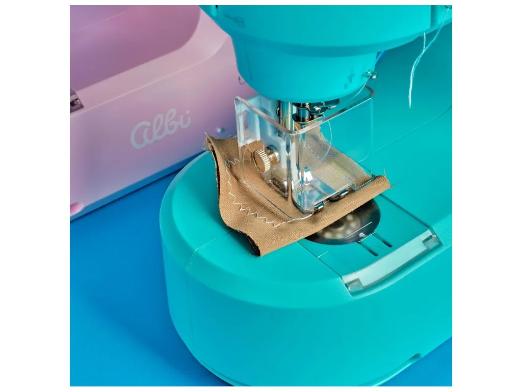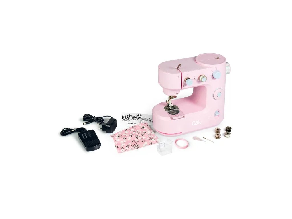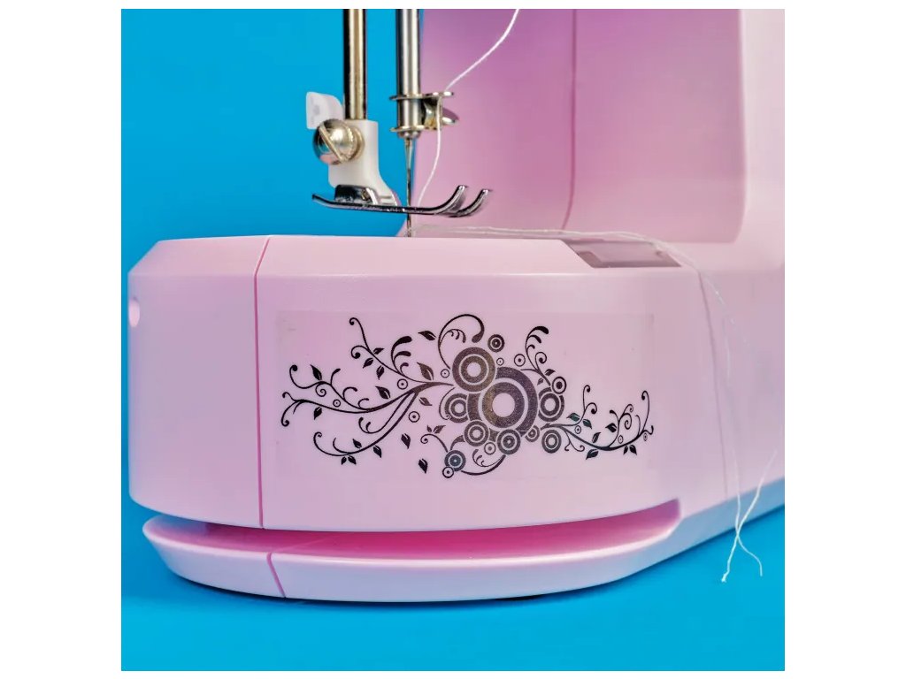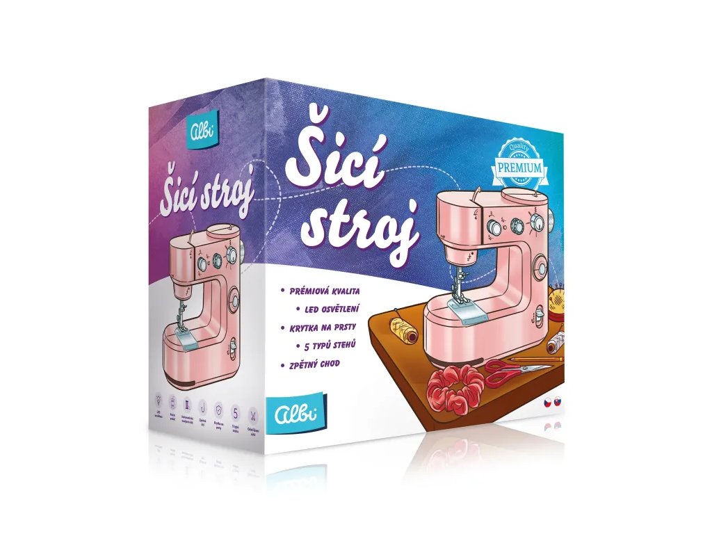 Kvalitní a designový šicí stroj, na kterém se naučíte základy šití, zabaví děti od 8 let. Šicí stroj je napájen adaptérem (do elektrické zásuvky) s příslušenstvím (cívky, nitě, jehla, navlékátko) a materiálem na výrobu gumičky do vlasů. Rozměry balení: 30 cm × 26 cm × 17 cm