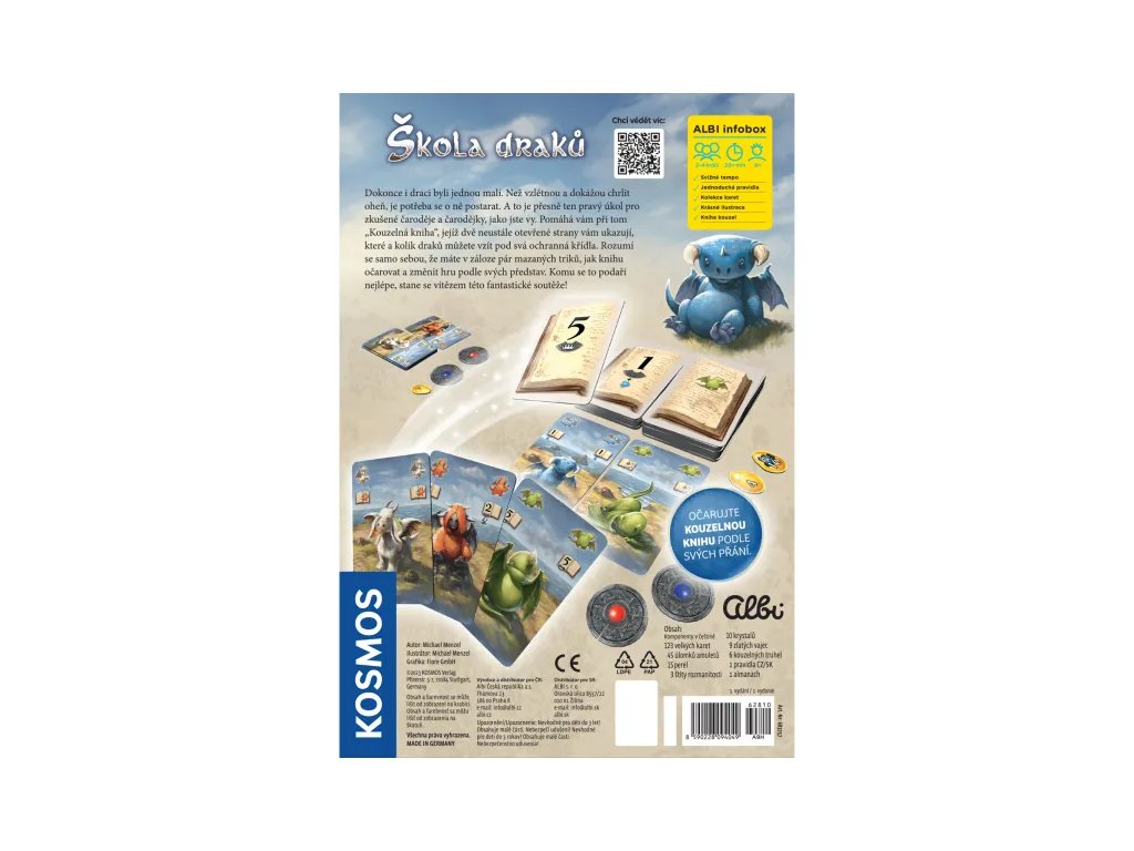 Rodinná desková hra pro děti od 8 let, ve které se hráči v roli čarodějů a čarodějek starají o mláďata draků. Pomocníkem je Kouzelná kniha, která určuje, jaké draky mohou hráči chránit. Cílem je co nejlépe se o draky postarat a stát se vítězem. Hra má jednoduchá pravidla, krásné ilustrace a atraktivní téma s draky, díky čemuž je ideální pro rodinné hraní. Hra obsahuje: 123 velkých karet, 45 úlomků amuletů, 15 perel, 3 štíty rozmanitosti, 10 krystalů, 9 zlatých vajec, 6 kouzelných truhel, pravidla, almanach.
