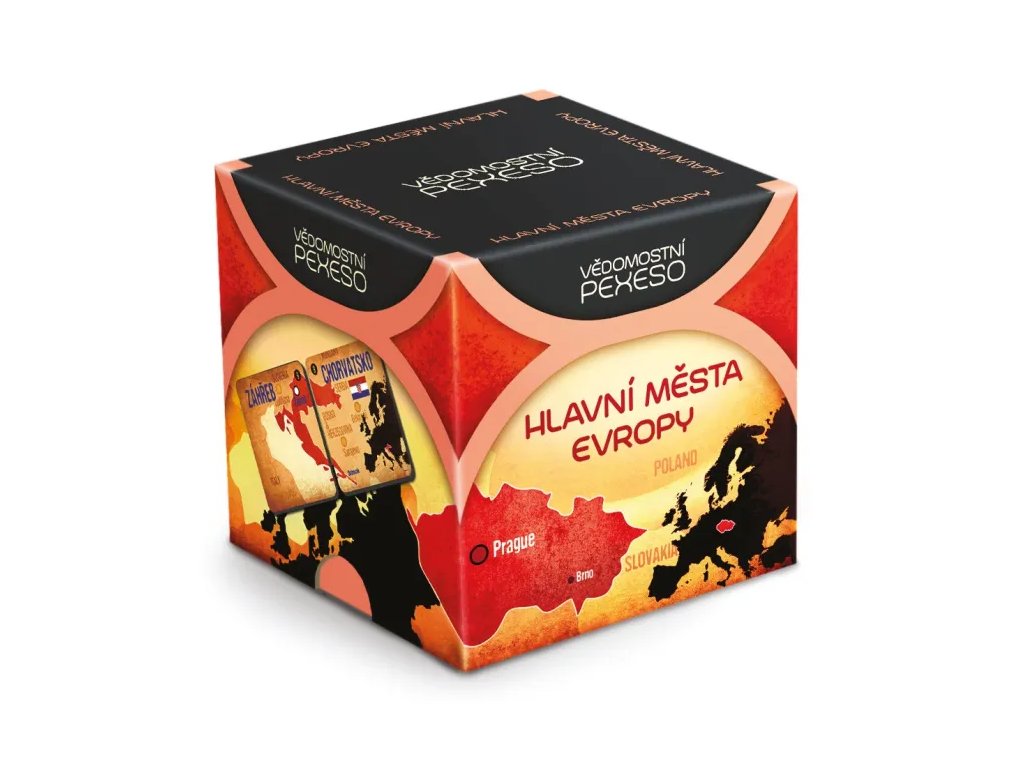 Hra vychází z klasického pexesa. Nehledají se však dva stejné obrázky, ale dvě informace, které k sobě patří. Díky vědomostnímu pexesu si můžete oživit znalosti hlavních měst Evropy. Hra obsahuje: 48 kartiček (tj. 24 párů).
