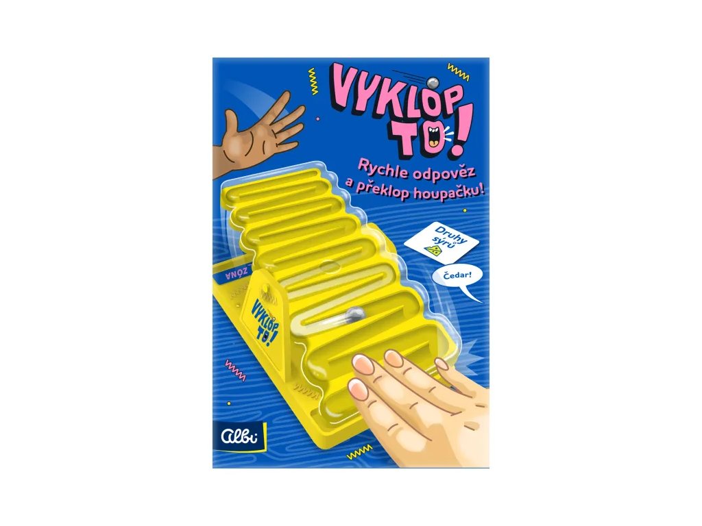 Nakloňte houpačku, vyklopte odpověď - v tom spočívá bláznivá rodinná hra Vyklop to, ve které se týmy utkají o poslední slovo. Hra obsahuje: 150 karet s kategoriemi, 4 pěnové podložky, 2 plastové zarážky, 1 houpačku, 1 kovovou kuličku a pravidla hry.