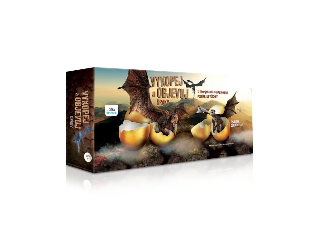 Jedinečná sada Vykopej a objevuj - Draci od Albi Science skrývá 12 zlatých vajec s překvapením v podobě dračích figurek. Každá figurka je zcela odlišná.