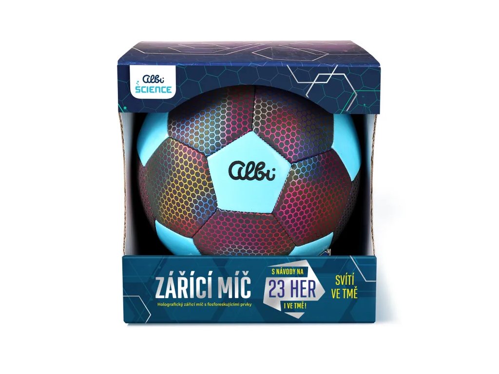 Tento speciální míč s reflexním holografickým efektem a fosforeskujícími prvky pracuje na principu lomu světla, díky kterému ve tmě duhově září. Obsahuje také soubor 23 zábavných míčových her s pravidly. Sada obsahuje: holografický zářící míč s fosforeskujícími prvky, stojánek na míč, věšák na medaile, bavlněnou síťovku na míč a návod.