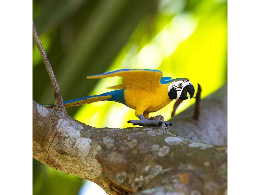Tento druh papouška Ara je velmi známý, zejména svou schopností naučit se rychle mluvit. Stejně jako ostatní figurky od firmy Safari Ltd. je i tato profesionálně tvarovaná a ručně malovaná. Vše detailně propracováno.