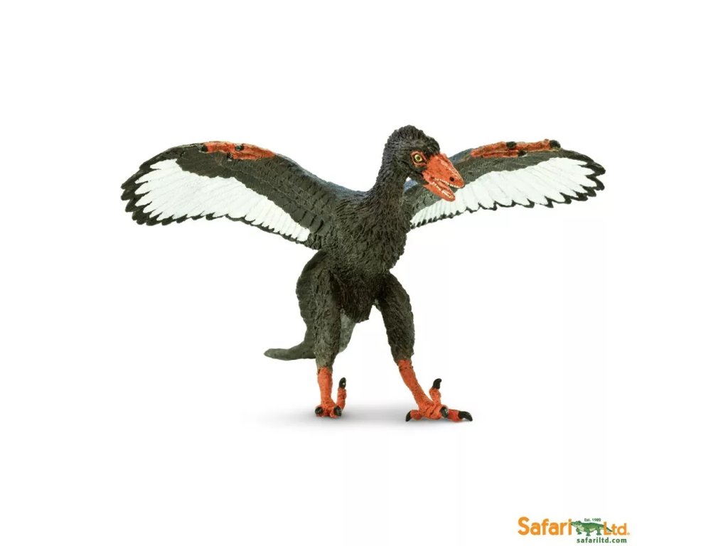 Je to pták, nebo dinosaurus? Nebo obojí? Prozkoumejte tohoto prehistorického tvora a zjistěte, co je vlastně zač! Kostra tohoto prvního ptáka se našla na území dnešního Německa. Zvláštností toho tvora je, že i když vypadá jako pták, má zuby i rozpoznatelné prsty, přesně jako dinosaurus. Rozměry: 9.75 cm x 10.75 cm x 9,75 cm Vhodné pro děti od 3 let. Safari Ltd. – popis firmy Safari Ltd. je americká firma zaměřená na výrobu ekologických hraček. Na jejím počátku v roce 1982 byla dětská karetní hra na téma ohrožené druhy zvířat. V roce 1986 firma podepsala licenční smlouvu s Carnegie Museum of Natural History. Tato licence umožnila vyrábět autentické modely dinosaurů ve spolupráci s jejich nejlepšími paleontology. S postupným rozrůstáním firmy se začala rozšiřovat i série modelů, které se už neomezovaly jen na dinosaury, ale nabízely pohled na celý svět. Hlavní myšlenkou firmy Safari Ltd. je „učit se hrou“. Navrhuje figurky zvířat tak, aby byly naprosto autentické a svou kvalitou co možná nejvíce odpovídaly skutečnosti. Díky svému ručnímu zpracování je každý výrobek jedinečný. Vzhledem k stále novým vědeckým objevům jsou figurky neustále aktualizovány, mají tak pozitivní vliv na vzdělávání dítěte v oblasti přírody a její ochrany. I proto jsou velmi oblíbenou vzdělávací pomůckou pedagogů celého světa. Touto koncepcí si firma Safari Ltd. vysloužila řadu ocenění za podporu vzdělanosti a význam ochrany životního prostředí a ohrožených druhů. V současné době firma Safari Ltd. nabízí nejen samostatné modely, ale i figurky, které jsou tématicky zařazeny do sad, a to podle oblastí, kde se vyskytují, nebo podle svého živočišného druhu. Můžete se tak detailně seznámit se zvířaty Arktidy, pouště, oceánu a jiných oblastí, nebo zkoumat druhy žab, motýlů, velryb a spousty dalších. Safari Ltd. však neopomíjí ani svět lidí a jeho historii a dílo, a tak můžete poznat nejvýznamnější stavby světa, občanskou válku v Americe, idiány, pravou africkou vesnici, ale dokonce i dopravní prostředky a vesmír. Pro opravdové sběratele jsou k dispozici rozšířené sady! Samostatnou kapitolou výrobků firmy Safari Ltd. jsou produkty z kolekce Safariology. Jedná se o soubor pomůcek do přírody a modely pro pozorování života živočichů a rostlin. Tato kolekce zahrnuje dalokohledy, kompasy, krabičky na brouky, lupy a spoustu dalších nástrojů pro bádání, ale i životní cykly několika druhů zvířat a rostlin, jako je např. mořská želva, kuře, komár, včela, či fazole, ba dokonce i vývoj člověka od svého prapočátku až dodnes. Po tři generace firma Safari Ltd. pokračuje kupředu s jasnou vizí. Rok co rok vytváří stále nové hračky, které vzdělávají a ukazují našim dětem kouzla života na této planetě.