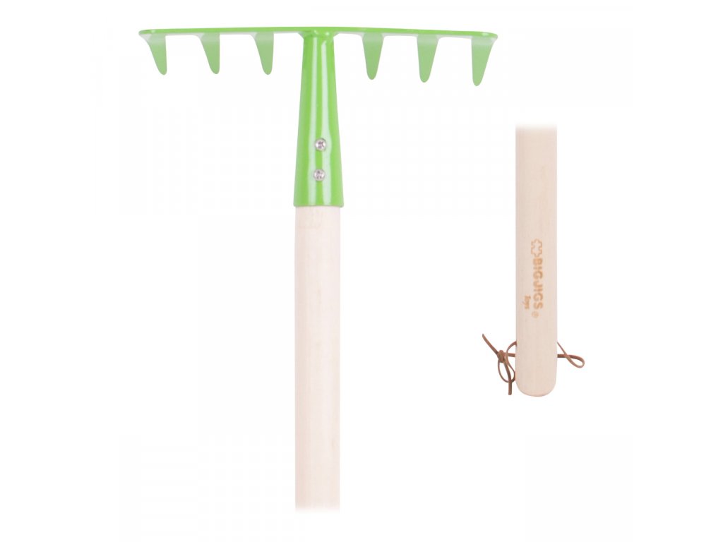 Malí zahradníci si zamilují robustní zahradnické hrábě zelené s dlouhou rukojetí. Ideální při práci na zahradě s mámou a tátou. Zahradní doplňky dostupné v zahradnickém sortimentu Bigjigs Toys zahrnují zahradnický pás, tašku s nářadím, zahradnické rukavice, nářadí s dlouhou rukojetí, konve, kbelíky, ruční nářadí a zástěru. Hlavní vlastnosti: ideální velikost pro dětirozvíjí motoriku a vztah k příroděvyrobeno z kovu, dřevěná násada
