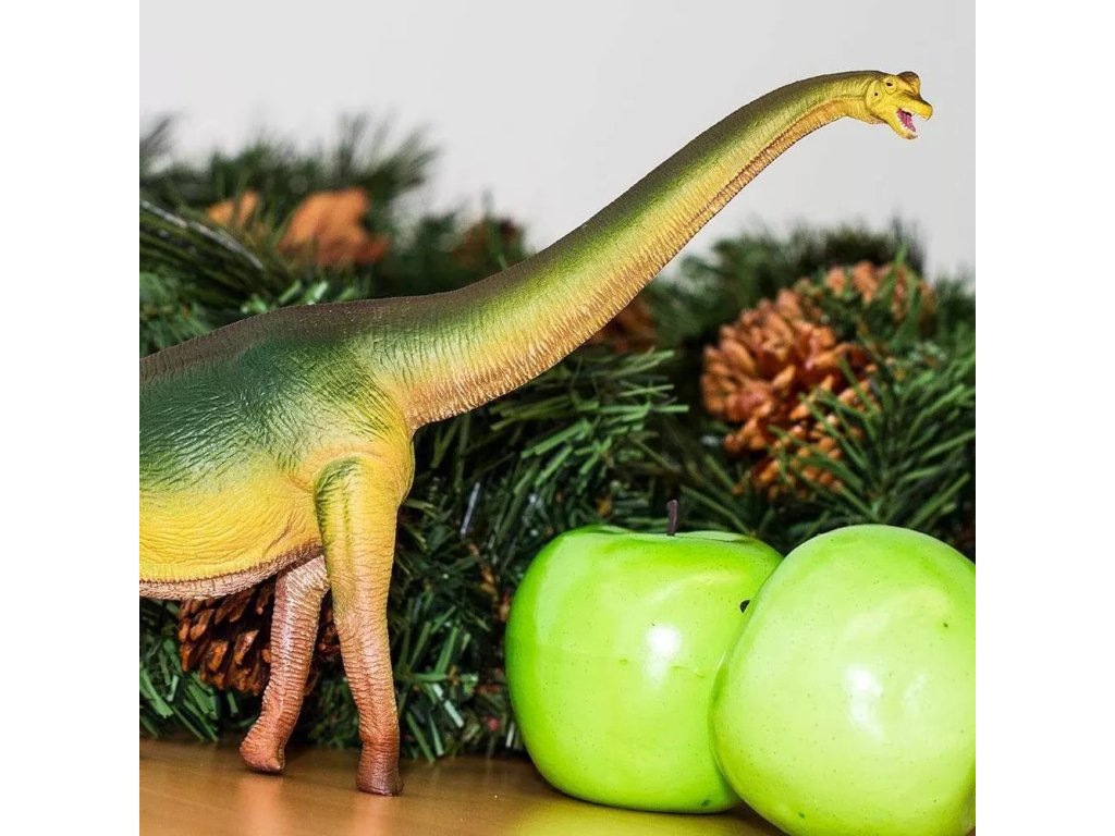 Figurka obrovského dinosaura s opravdu dlouhým a mohutným krkem, se kterým dosáhl až vysoko do stromů. Brachiosauři žili zhruba před 153 milion let.