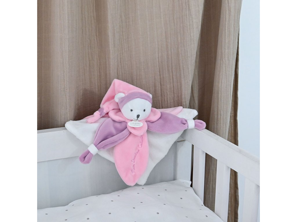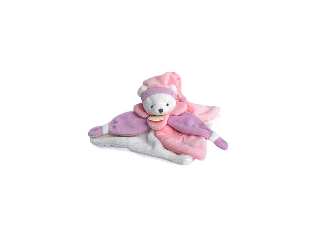 Doudou Dárková sada - plyšový muchláček růžový medvídek 24 cm