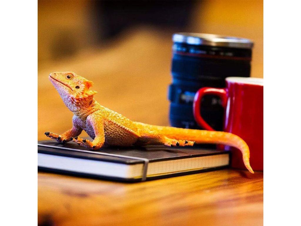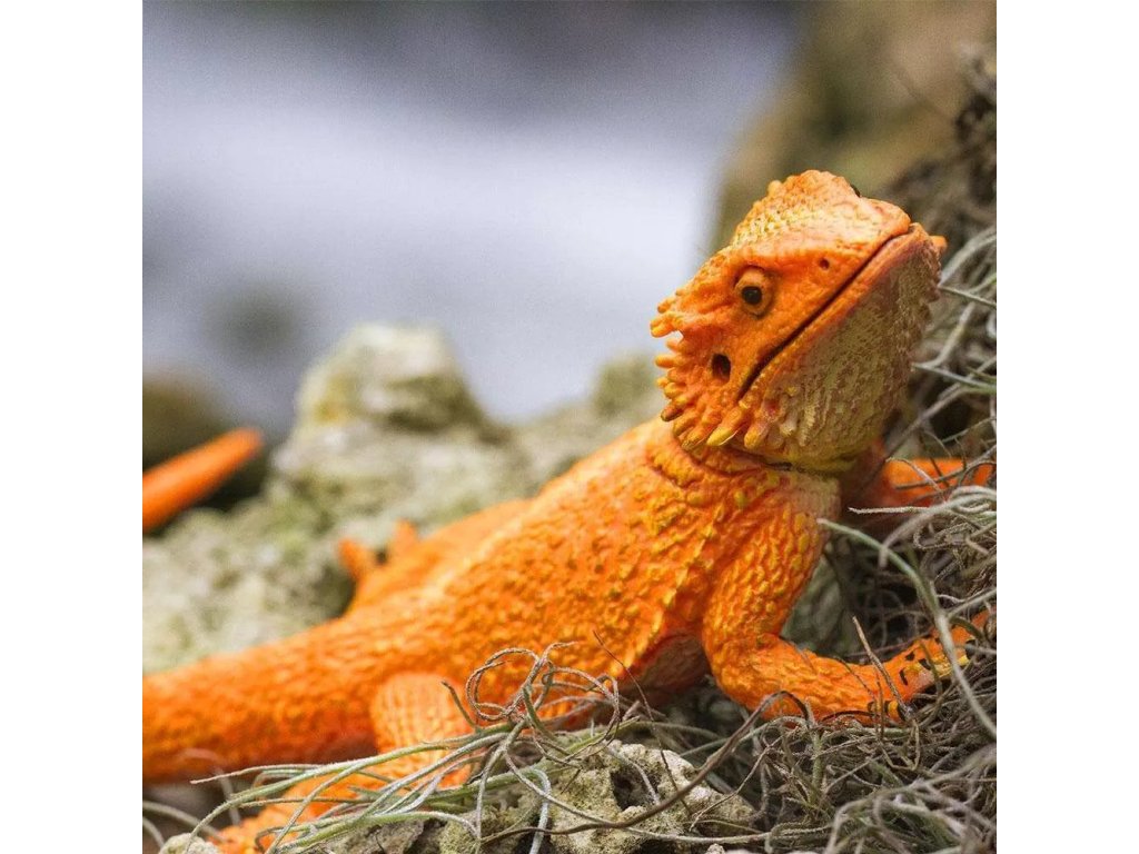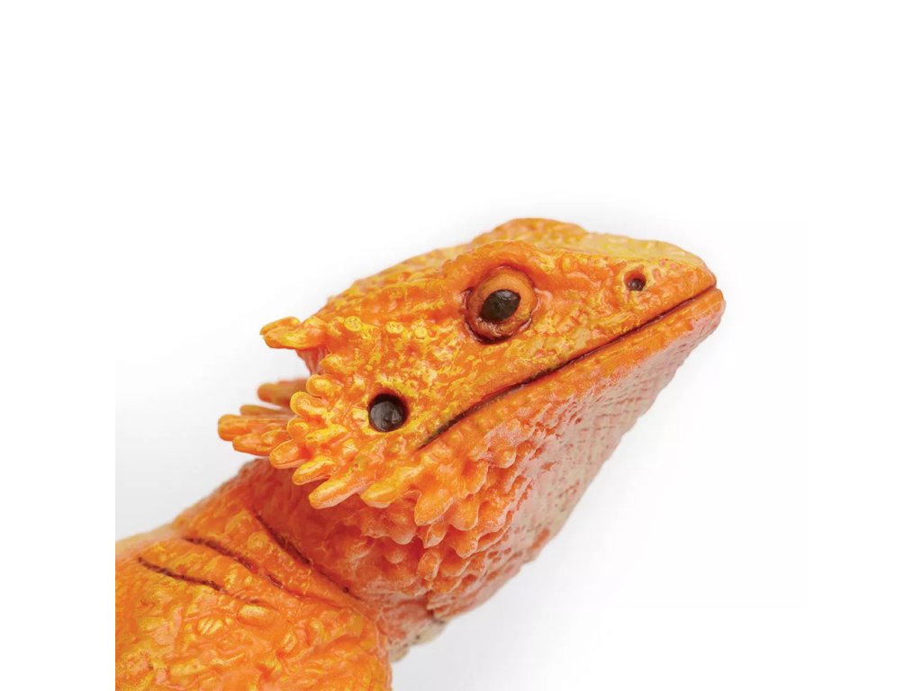 Figurka agamy vousaté, denního ještěra, pocházejícího z čeledi agamovitých. Má žluté, světle hnědé až hnědočervené zbarvení, dosahuje velikosti až 60 cm. Agama stejně jako hadi svléká svou kůži, svléknutí celé kůže brání trnité výrůstky. Dožívá se 10- 15 let.
