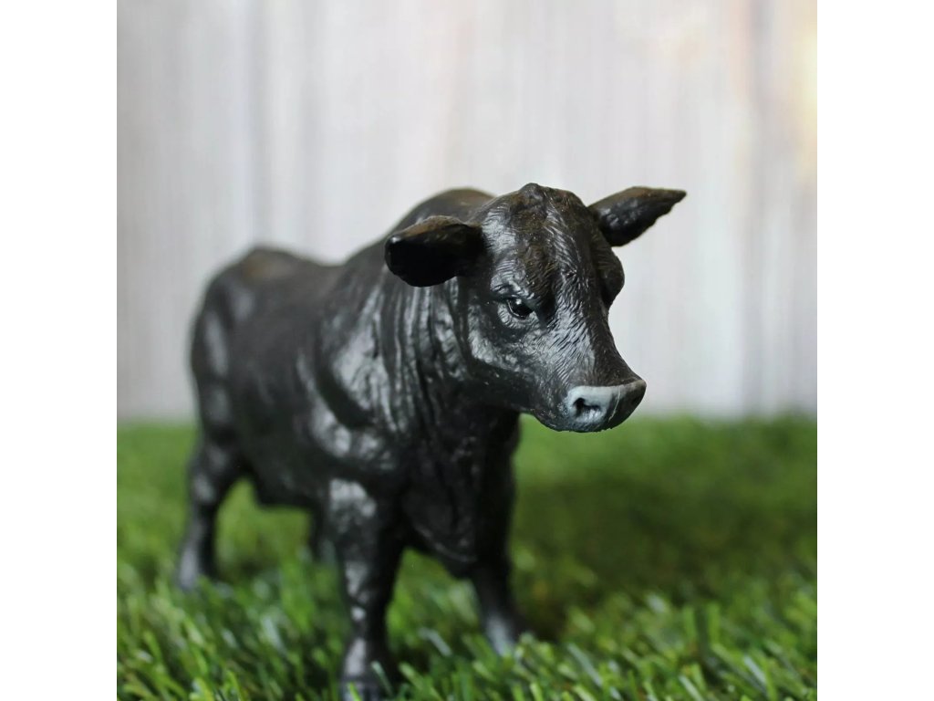 Figurka anguského býka, jež je původem ze Skotska. Zvláštností tohoto býká je to, že nemá rohy.