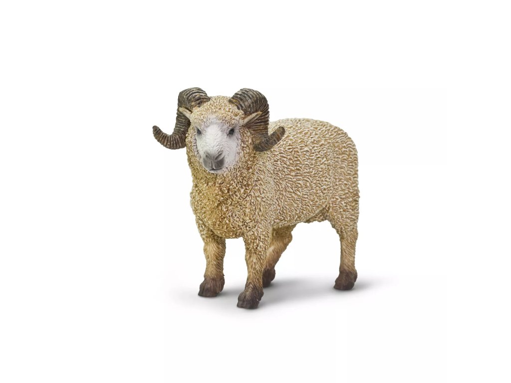 Figurka krásného berana se zatočenými rohy. Tento beran žije převážně v Kouřových horách Severní Ameriky.