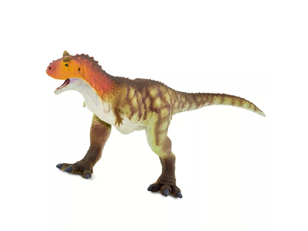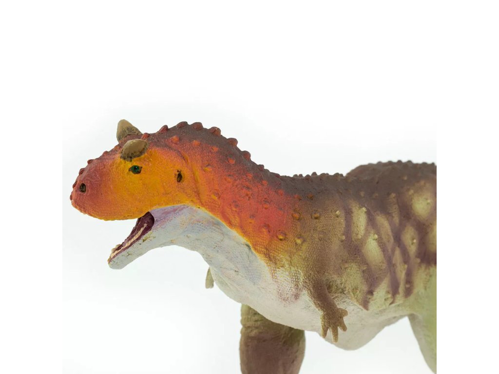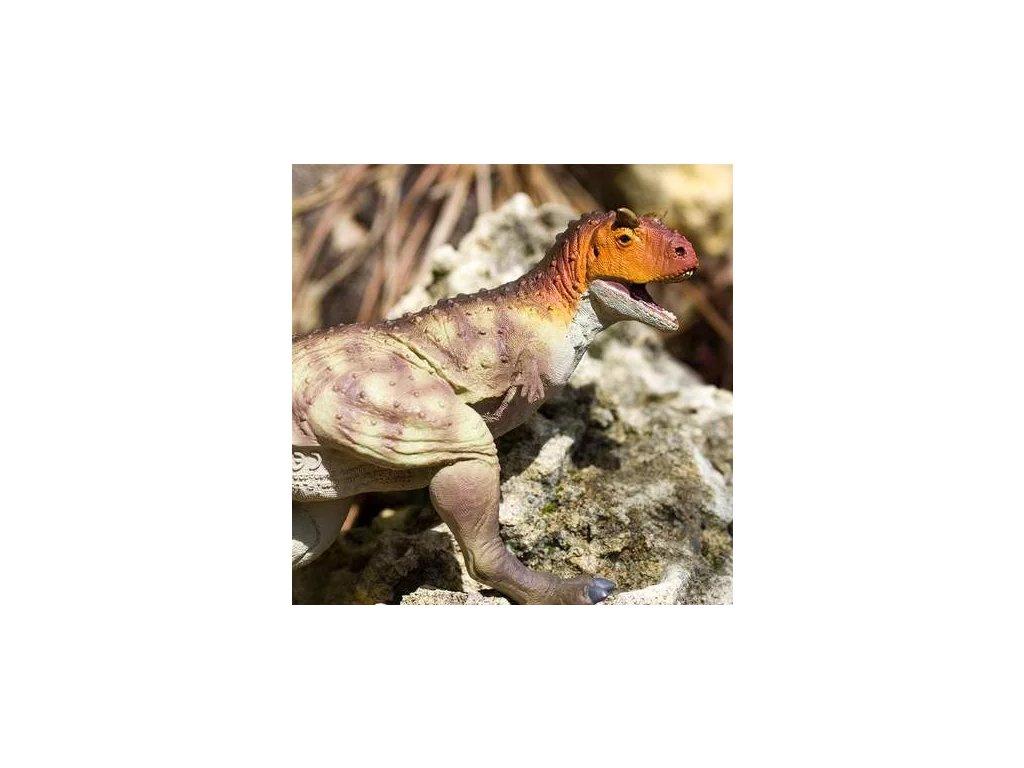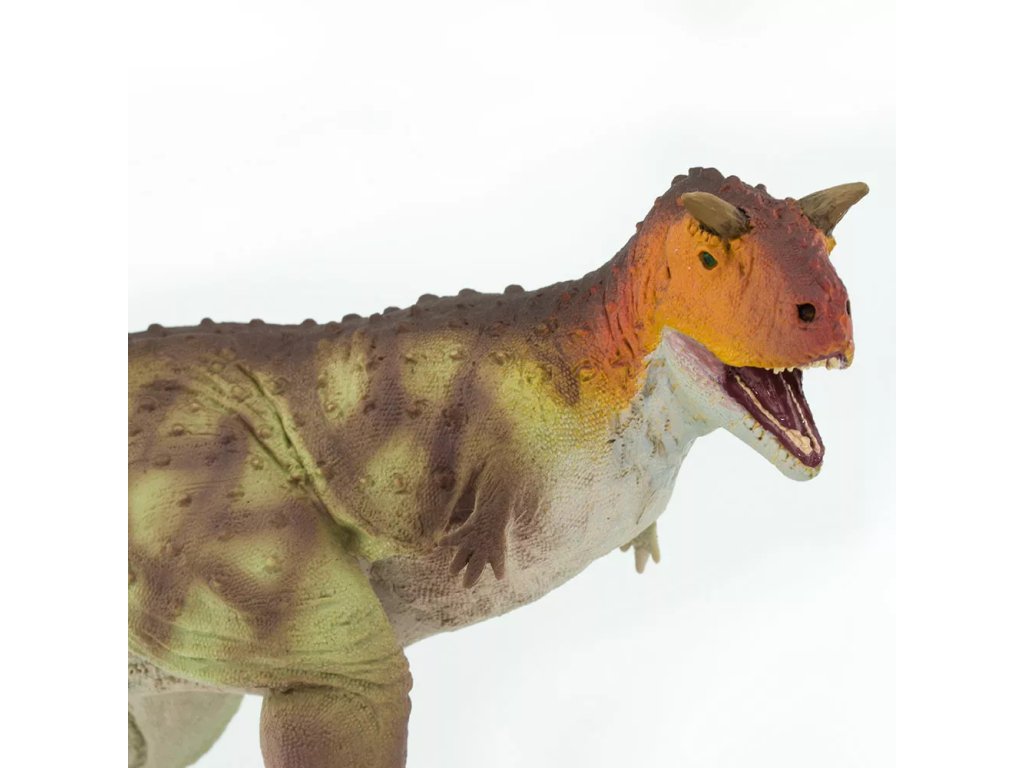 Figurka Carnotaura, plazopánvého teropodního dinosaura, který žil přibližně před 72 - 70 miliony let v Argentině. Carnotaurus je též nazýván "masožravý býk". Své druhé jméno získal podle dvou výrůstků nad očima, které připomínaly býčí rohy. Carnotaurus chodil po dvou končetinách, jeho přední končetiny byly velmi krátké a víceméně nepoužitelné. Tento masožravec byl dlouhý přibližně 7-9 m a vážil přes 1,5 tuny.