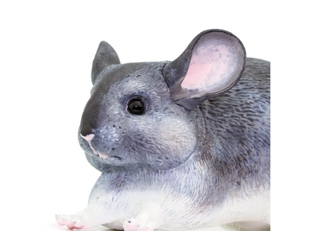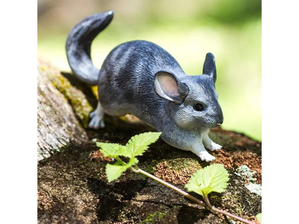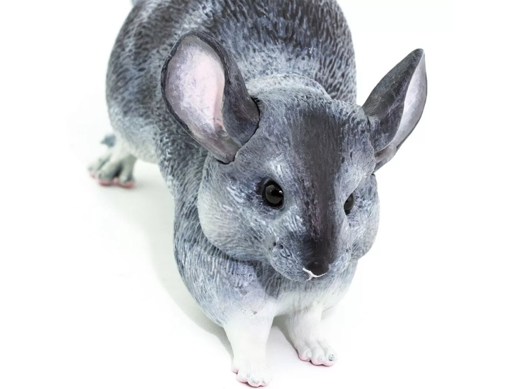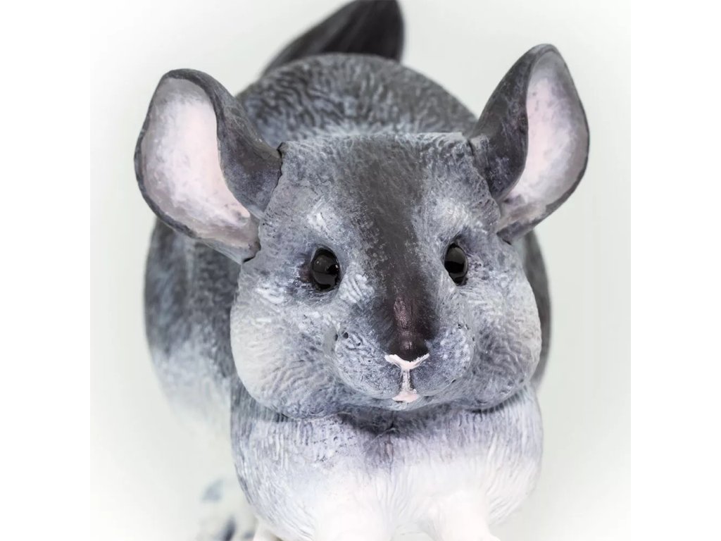 Figurka činčily, hlodavce s krásnou a velmi hustou srstí, pocházejícího původně z And Jižní Ameriky. Má krásné výrazné oči, obrovské uši, drobné tlapičky a načechraný ocas. Činčila patří mezi býložravce, živí se pouze rostlinnou stravou. Tito hlodavci jsou aktivní zejména v noci, žijí ve velkých koloniích a ve volné přírodě obývají převážně jeskyně. Jsou to však také příjemní společníci do domácnosti, avšak nemůžeme od nich očekávat mazlení, to rády nemají.