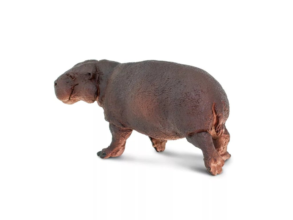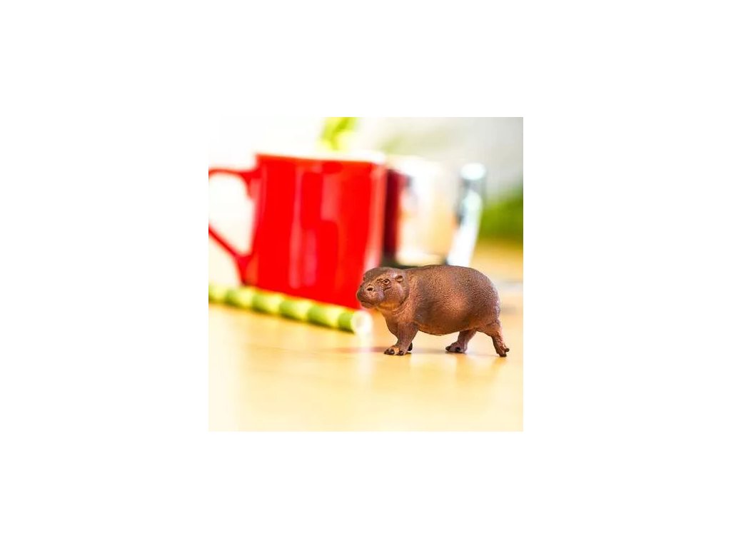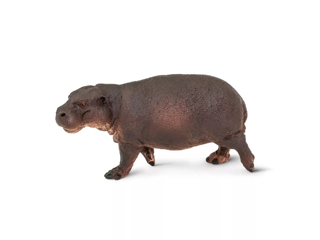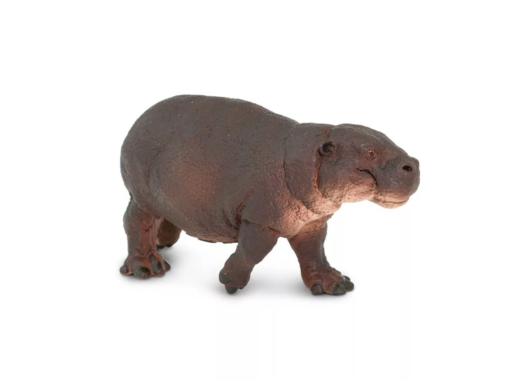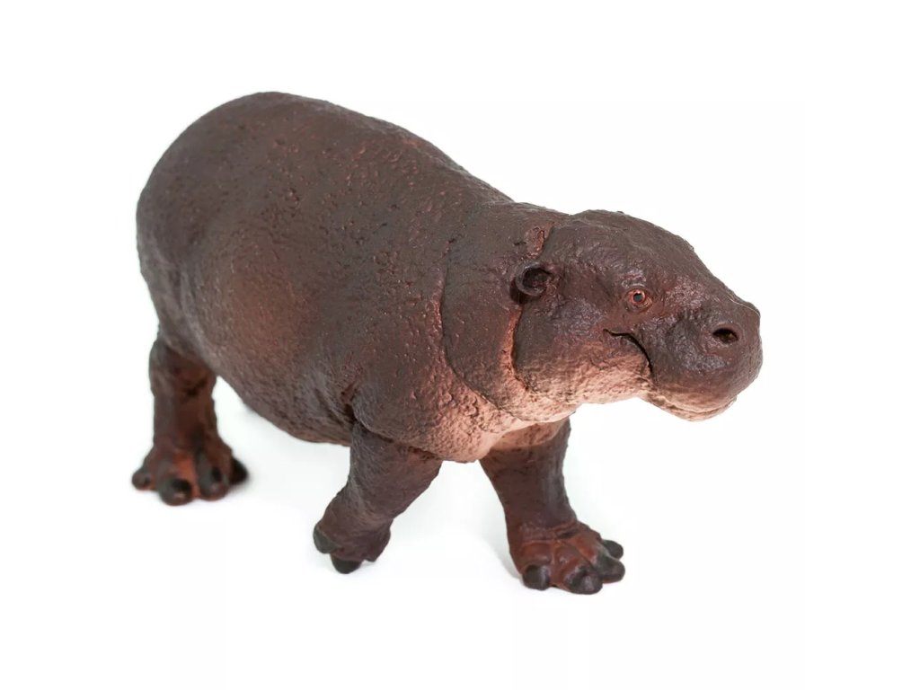 Figurka Hrošíka liberijského. Na první pohled by se mohlo zdát, že je tento hrošík mládě od svého velkého příbuzného, běžného hrocha. Nicméně, tento Hrošík liberijský, o polovinu menší a zhruba se čtvrtinou váhy svého bratrance hrocha, je opravdu dospělý samec. Kromě své velikosti se od hrocha liší rovněž nosními dírkami, které jsou užší. Hrošík liberijský totiž netráví tolik času ve vodním prostředí a je aktivní převážně v noci. Bohužel, i Hrošík liberijský se řadí mezi ohrožené druhy zvířat, a to díky nezákonným pytláckým lovům a těžbě dřeva v jejich domovině.