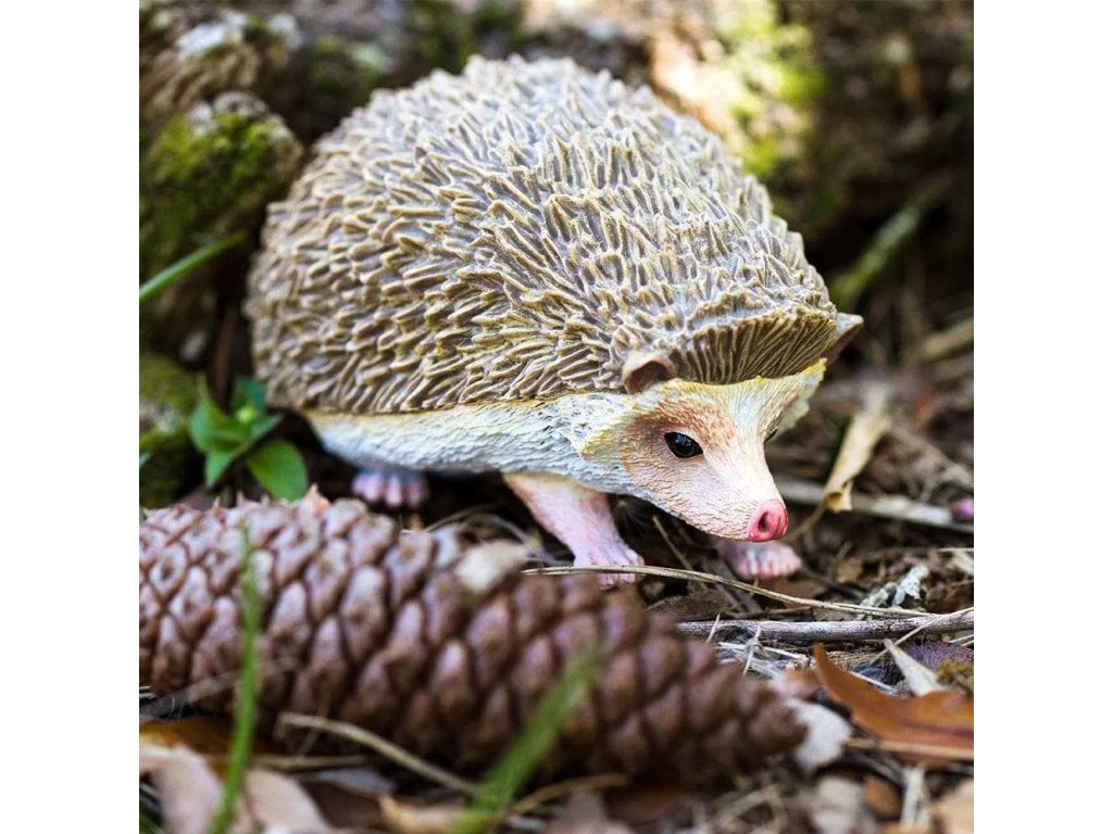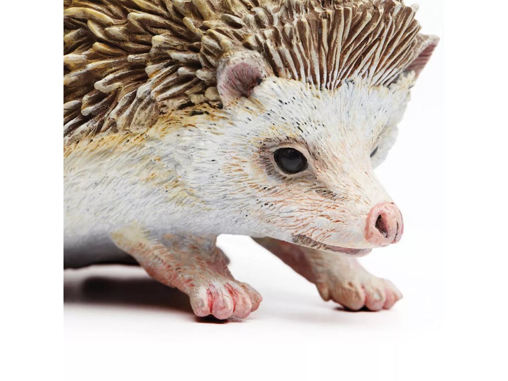 Figurka ježka, hmyzožravého savce, který patří mezi ohrožené druhy zvířat. Pro přírodu je ježek velmi užitečný. Živí se živočichy, kteří ve větším množství přírodě i člověku škodí. Jeho jídelníček se skládá hlavně z hmyzu, žížal, ale také slimáků a šneků. Vyhledává také různé bobule a druhy ovoce. Je to velký milovník jídla. Když může, každou noc zkonzumuje až 70 g potravy.