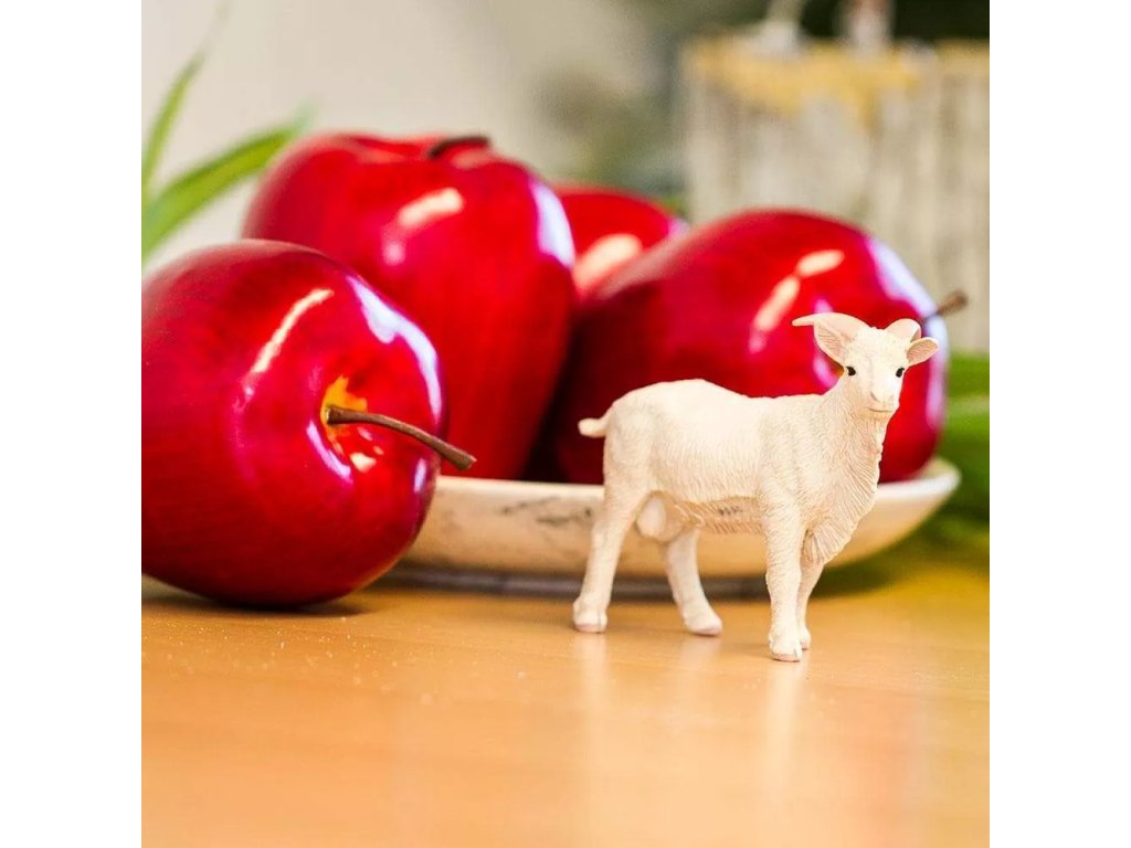 Figurka bílé kozy domácí, jež je jedním z prvních domestikovaných druhů koz vůbec.
