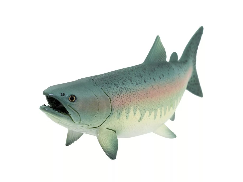 Figurka lososa, dravé tažné ryby, která je známá svým životním stylem. Začátek života tráví lososi v rodných řekách, poté se vydají do moře, kde tráví většinu života. A jakmile se chtějí rozmnožit, vrací se zpět do sladkých vod řek. Losos má dlouhé protáhlé tělo se štíhlým ocasním násadcem. Losos obecný je dravec, který se živí ve sladké vodě larvami hmyzu a drobnými rybkami. V moři pak loví výhradně menší ryby (například sledy).