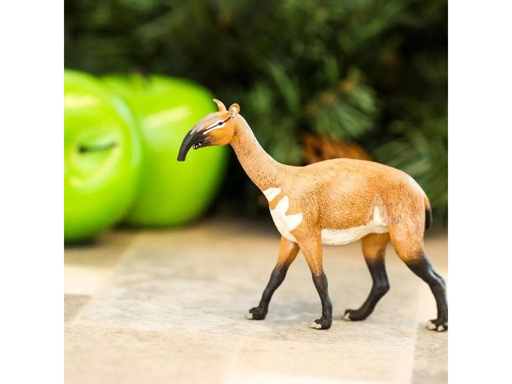 Figurka Macrauchenia, býložravého savce, který žil na území Jižní Ameriky v období pleistocénu. Měl dlouhý krk a malý chobot. Ve velké rychlosti dokázal kličkovat a utíkat tak před predátory. Měřil až 3 metry a vážil zhruba 900 kg.