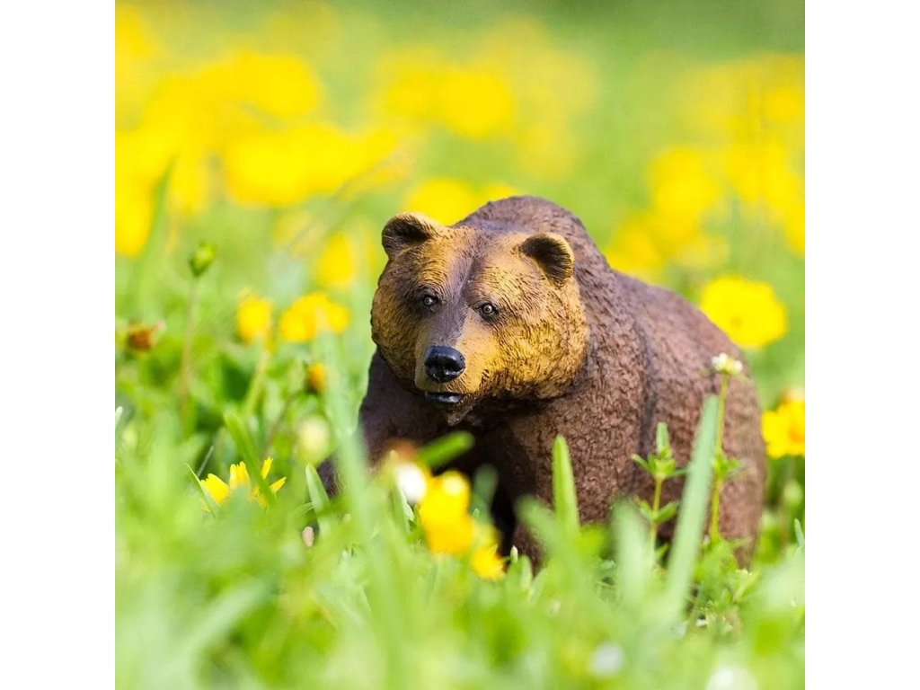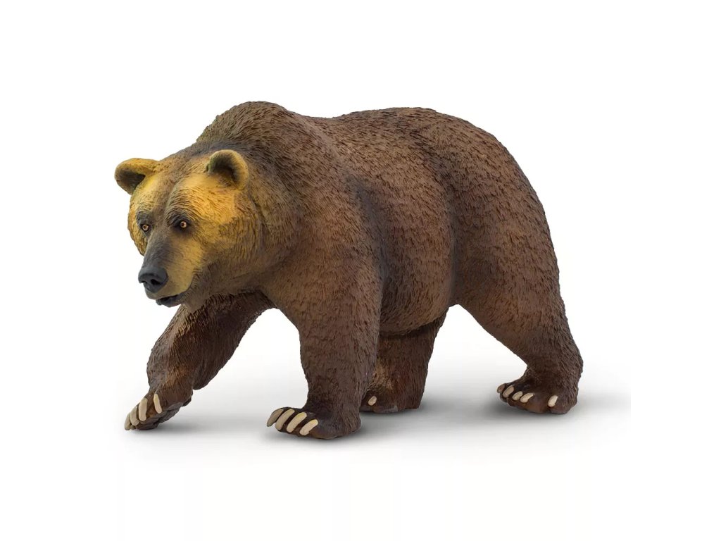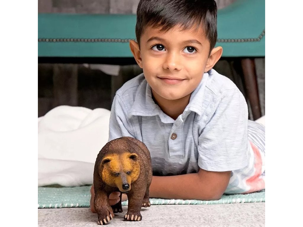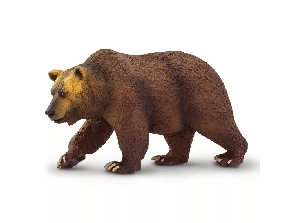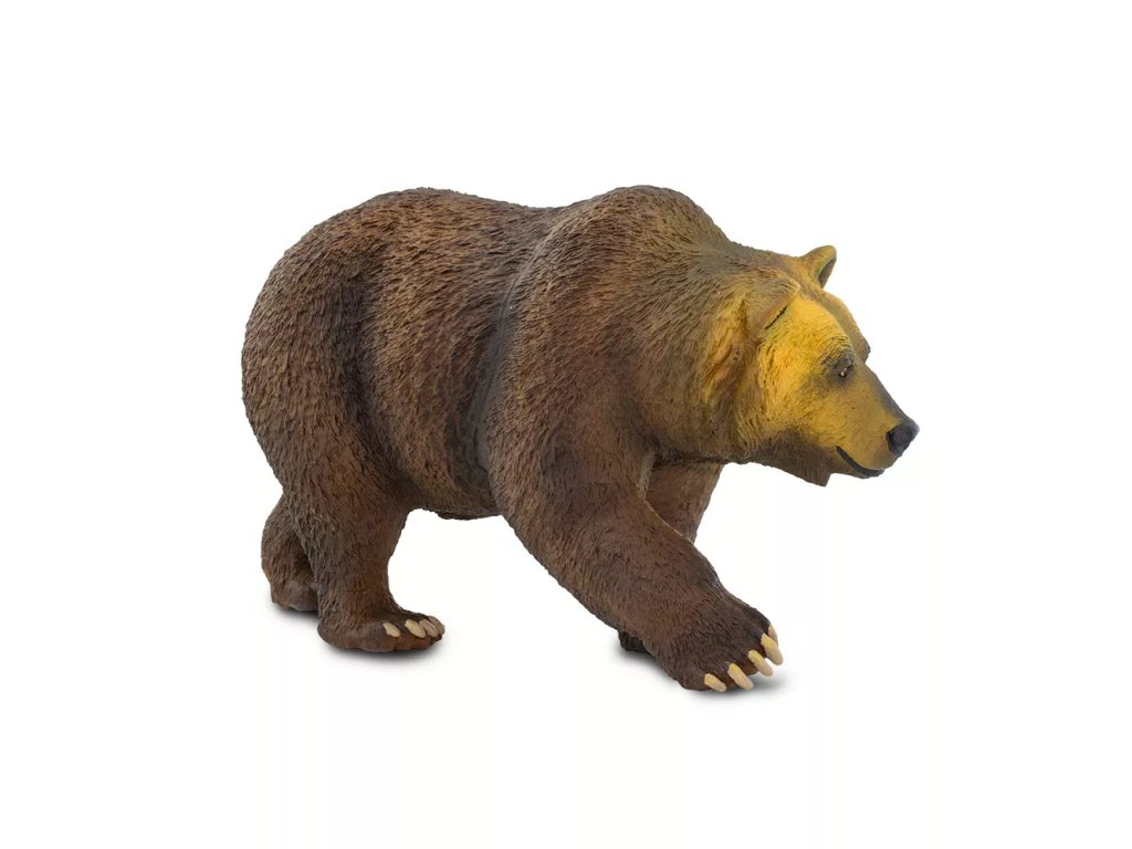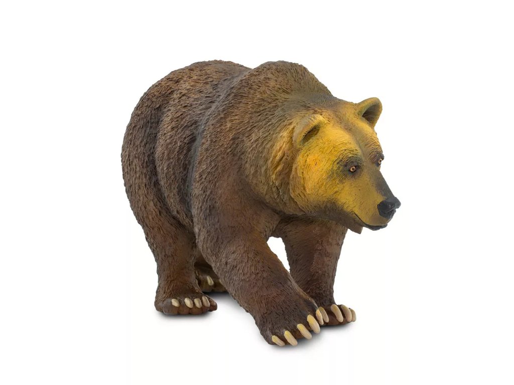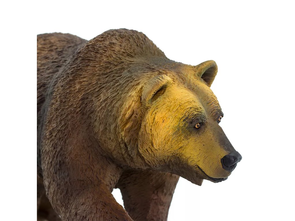 Figurka medvěda Grizzlyho, druhu hnědého medvěda, jež se nachází v extrémních oblastech Kanady a Aljašky. Zavalité zvíře s velkou hlavou dosahuje hmotnosti až 300 kilogramů. Grizzly je velmi pohybově nadaný, svou kořist většinou dohoní, jelikož dokáže vyvinout rychlost až 50 kilometrů za hodinu. Šplhá, skáče, plave. Na zimu si většinou vyhrabává brloh v zemi, avšak za slunných dní se probouzí a vydává se hledat potravu.