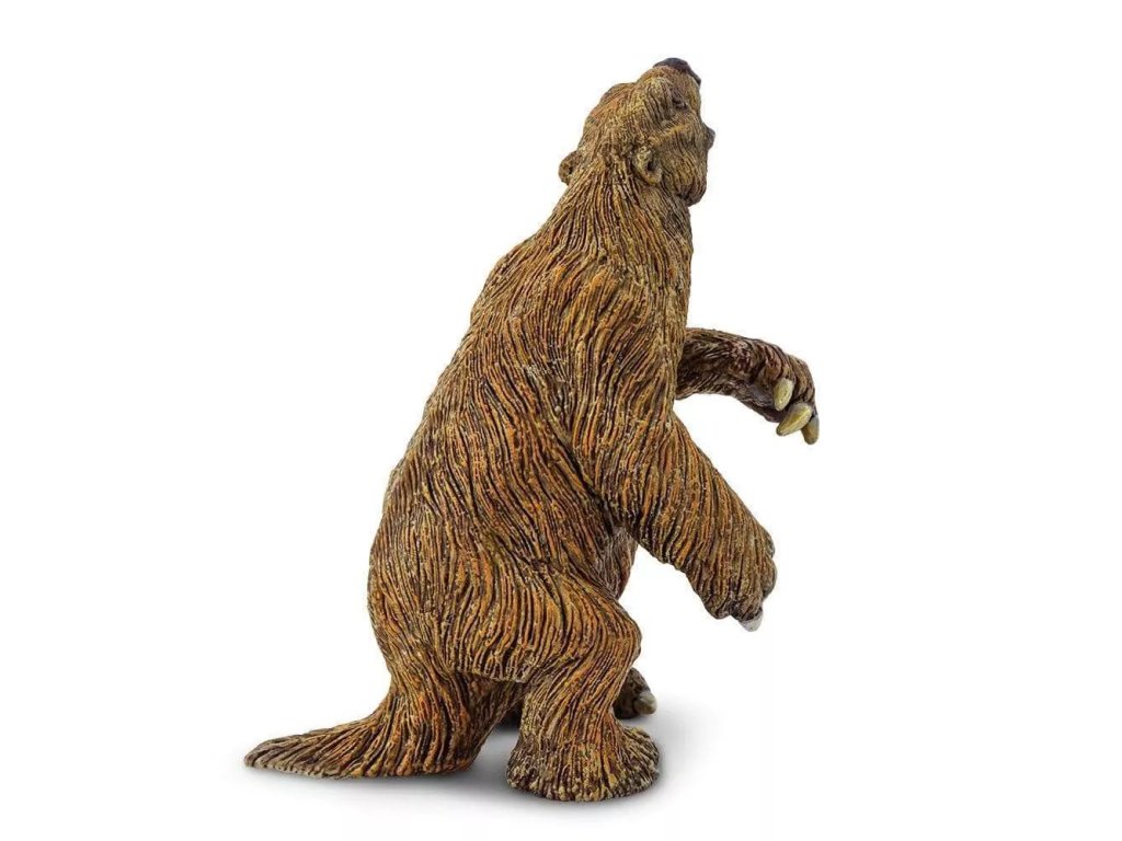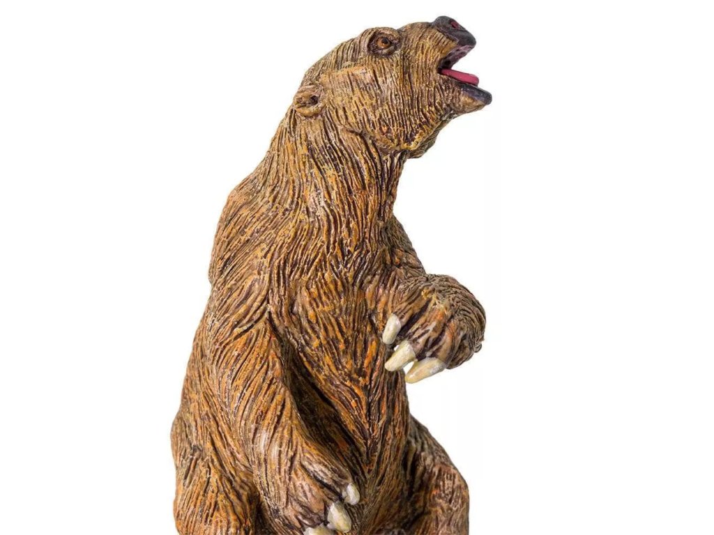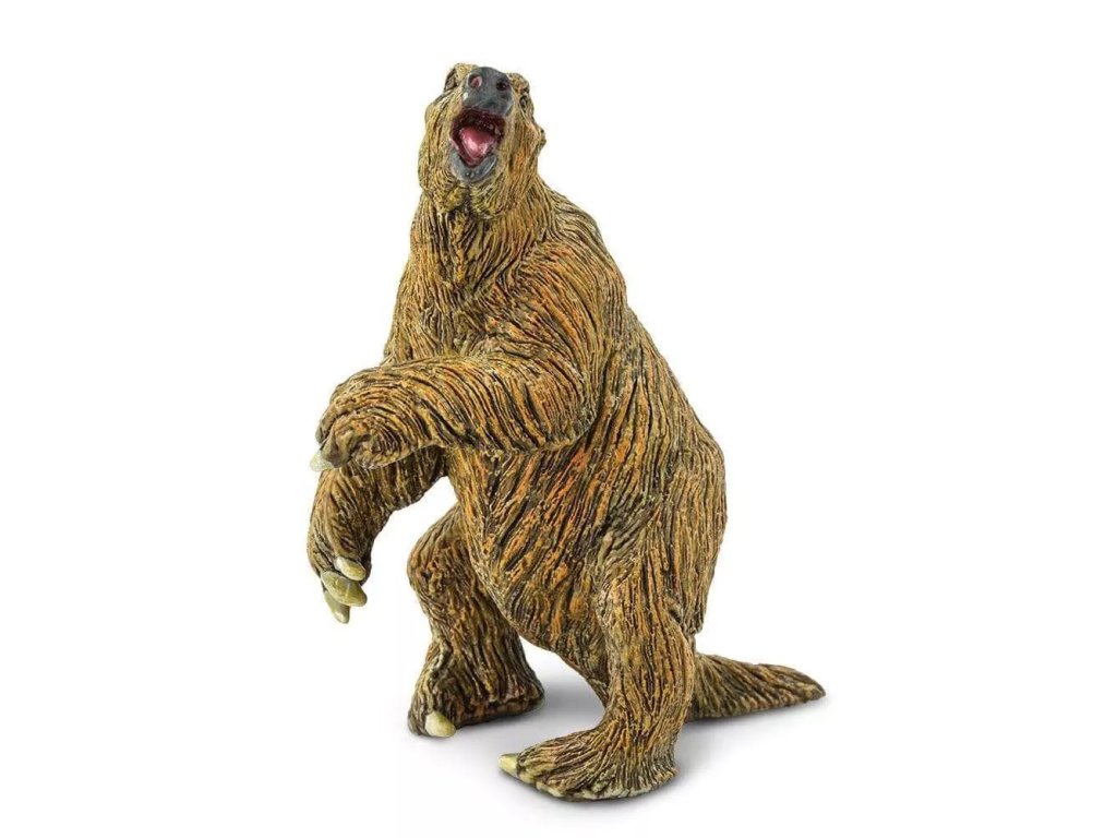 Figurka Megatheria, vyhynulého rodu obrovského pozemního lenochoda. Žil ve Střední a Jižní Americe a dosahoval zhruba rozměrů dnešního slona. Vypadal jako medvěd, ale byl těžký a velký jako slon. Žral listy stromů, za kterými se natahoval opřený o zadek, ale nepohrdl ani masem. Měl neobyčejně dlouhé drápy.