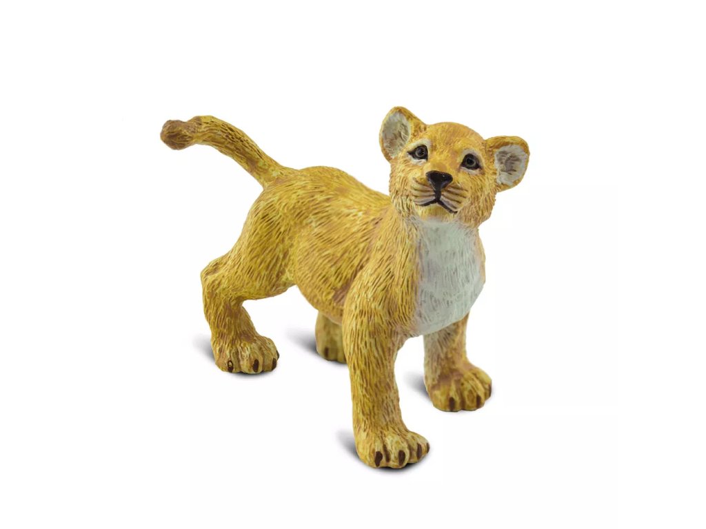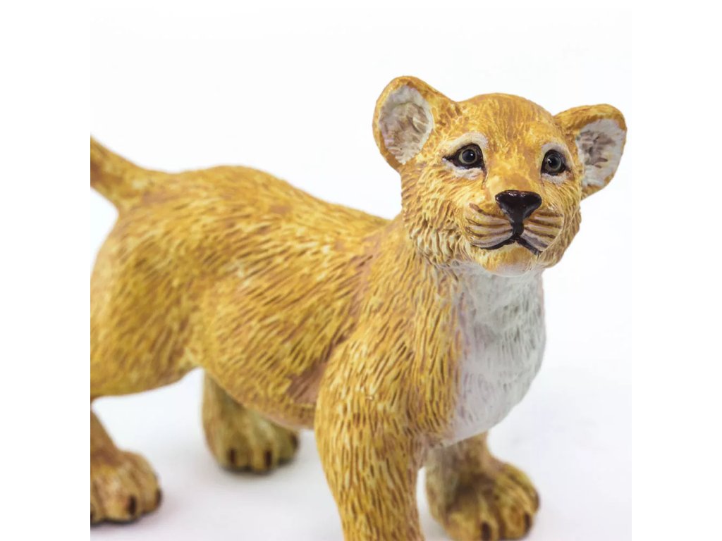 Figurka mláděte lva, savce čeledi kočkovitých. Lvi jsou velmi společenská zvířata, která svou kořist lov ve smečkách. Naprostá většina lvů žije v dnešní době ve východní a jižní části Afrik a jejich stavy se bohužel rychle snižují.