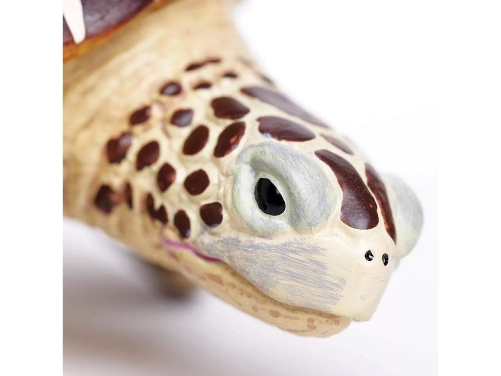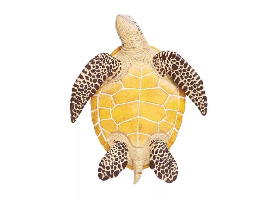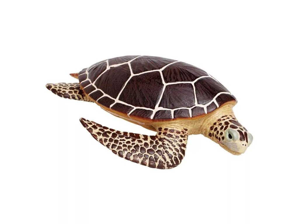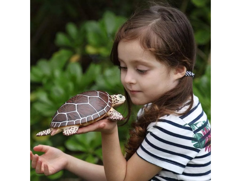 Figurka mořské želvy, která se od suchozemských a sladkovodních želv odlišuje především přítomností solných žláz ukrytých v lebce, končetinami přeměněnými v ploutve a redukovanějším, tedy na pohyb v moři lépe adaptovaným krunýřem. Mořské želvy plní v oceánech unikátní a klíčové ekologické role. Karety pravé, jejichž hlavní složku potravy tvoří mořské houby, například regulují nárosty hub na korálových útesech.
