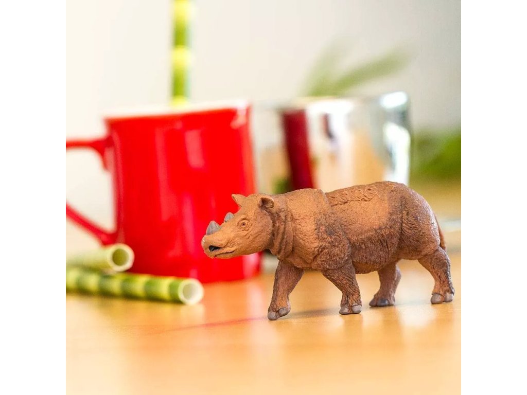 Figurka nosorožce sumaterského, druhého nejvzácnějšího nosorožce světa, který se od ostatních nosorožců odlišuje zejména svou hustou srstí, která je nejviditelnější na hřbetu, bocích a břiše. Špatný zrak a naopak velmi dobrý čich a sluch jsou dalším znakem těchto krásných zvířat. Nosorožec sumaterský hledá potravu především ráno a večer, a nejvíce mu chutnají listy či větvičky.