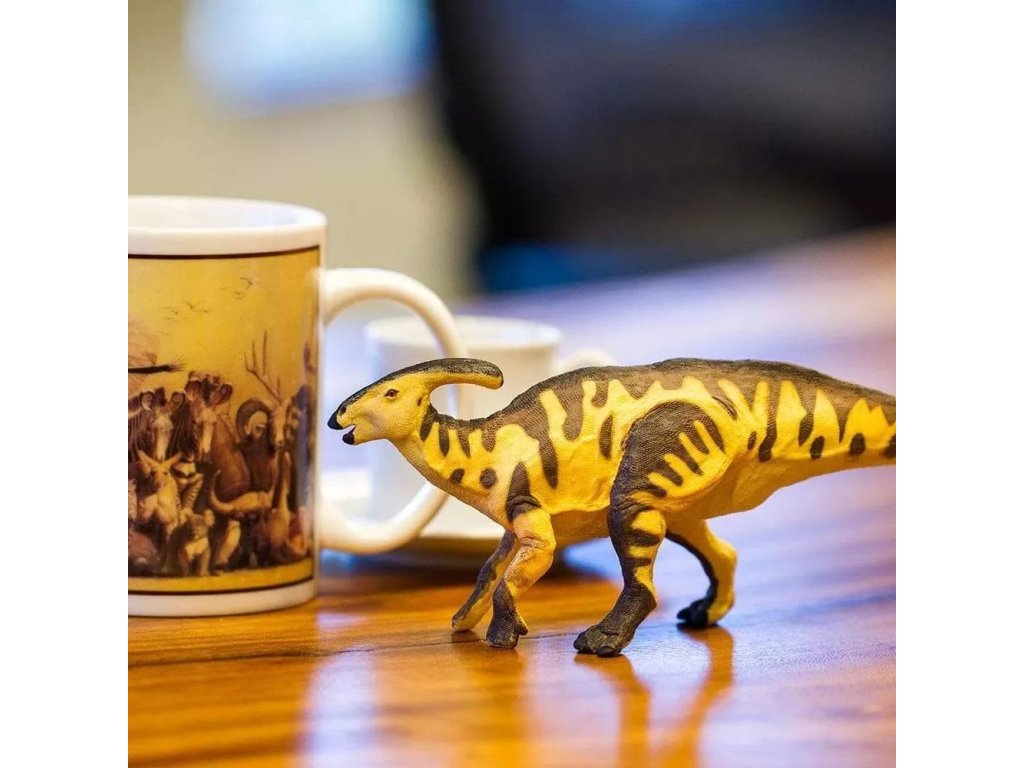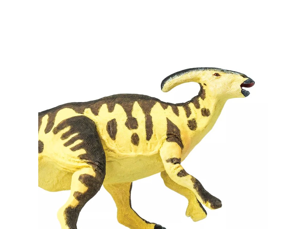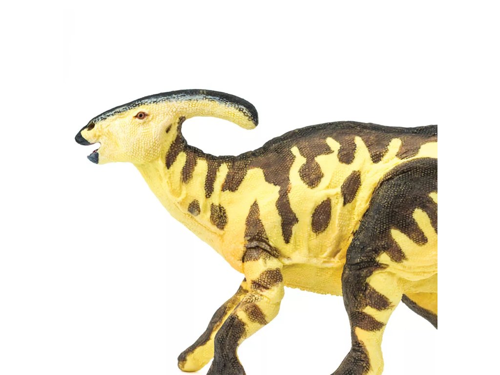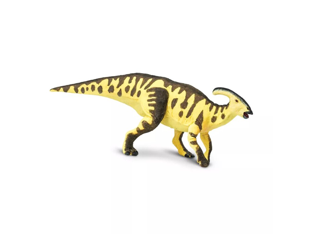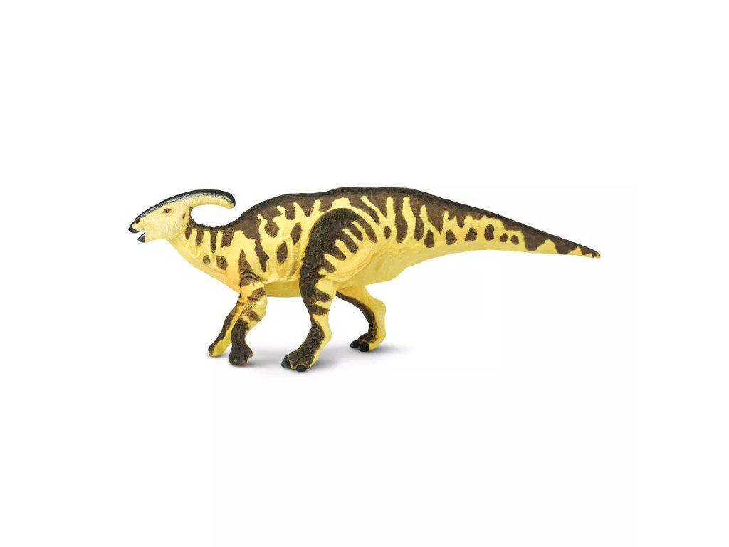 Figurka Parasaurolopha, mírumilovného pojídače rostlin, jež chodil většinu času po čtyřech nohách, ale když spěchal, mohl se vzchopit a běhat po dvou končetinách. Žil v Kanadě, v období křídy zhruba před 75 miliony let.