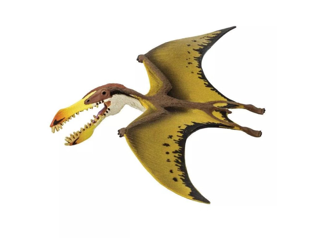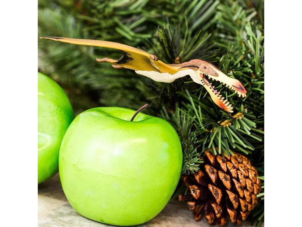 Figurka Pterosaura, ptakoještěra s ostrými zuby, které směřují ven. Je perfektně přizpůsoben chytání ryb z moře.