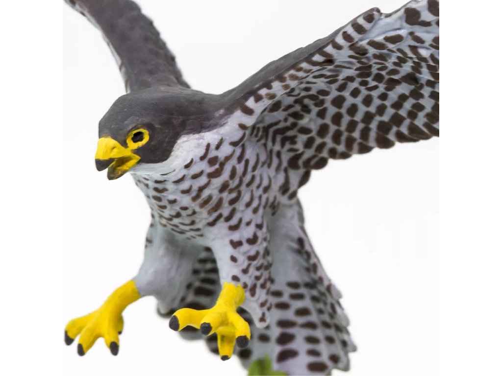 Figurka sokola stěhovavého, v současné době zřejmě nejrychlejšího zvířete (při střemhlavém letu dokáže letět rychlostí až 389 km/hod) - sokolovitého ptáka s dlouhými špičatými křídly a krátkým ocasem. Zajímavostí je, že si sokol stěhovavý nikdy nestaví hnízdo. Hnízdí většinou na skalních stěnách na holém podkladu, v hnízdech jiných druhů nebo dokonce i na zemi. Loví ptáky výhradně za letu. Střemhlav se na ně vrhne z výšky a útočí na ni svými pařáty.
