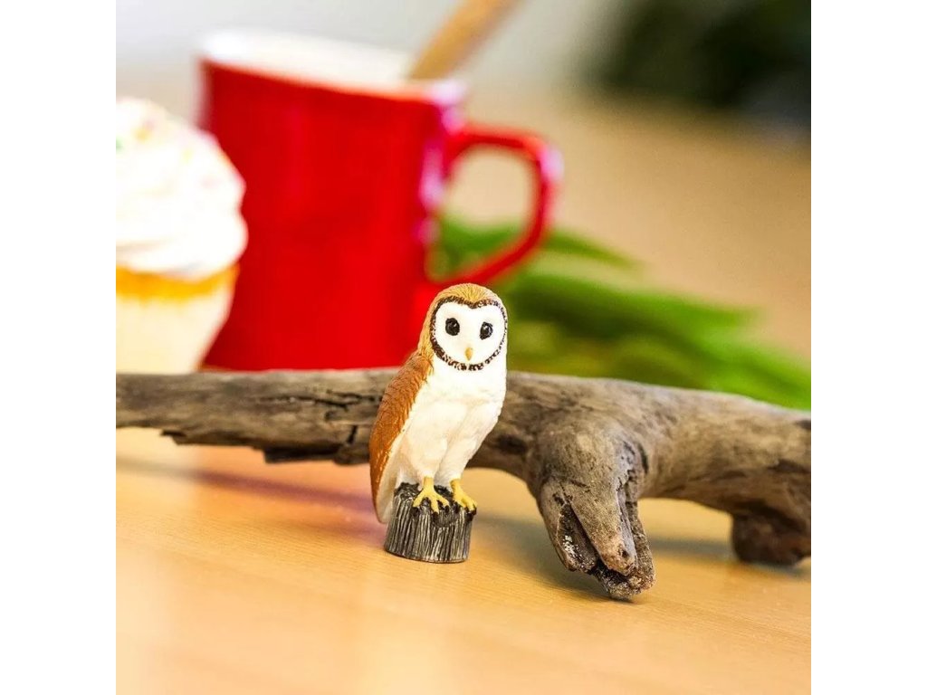 Figurka sovy pálené, nočního lovce, který loví ptáky nebo hlodavce. Sovy pálené mají velmi dobrý sluch, dokáží ulovit i kořist schovanou pod sněhem.