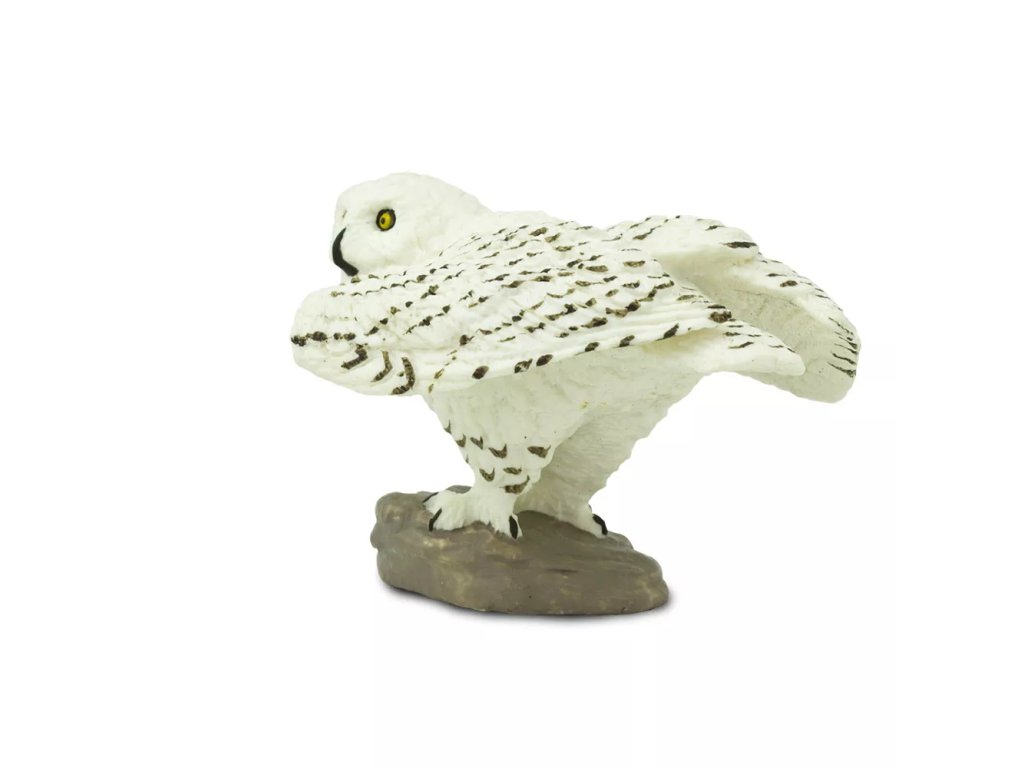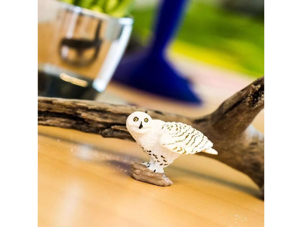 Figurka sovy sněžné, jež se pozná podle ostře bílého opeření, které jí pomáhá splynout se zasněženým prostředím chladnějších oblastech severní polokoule, kde se živí bezobratlými živočichy.