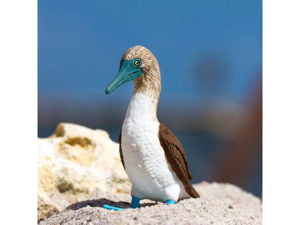 Figurka tereje modronohého, hnízdícího na skalnatých pobřežích Severní a Jižní Ameriky. Terej modronový se živí rybami, které loví střemhlavým letem pod hladinu. Má žluté, kulaté oči a netradiční, výrazně modré končetiny, které jsou opatřeny plovacími blánami.