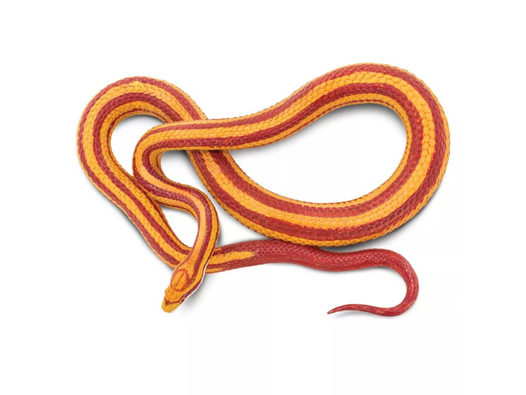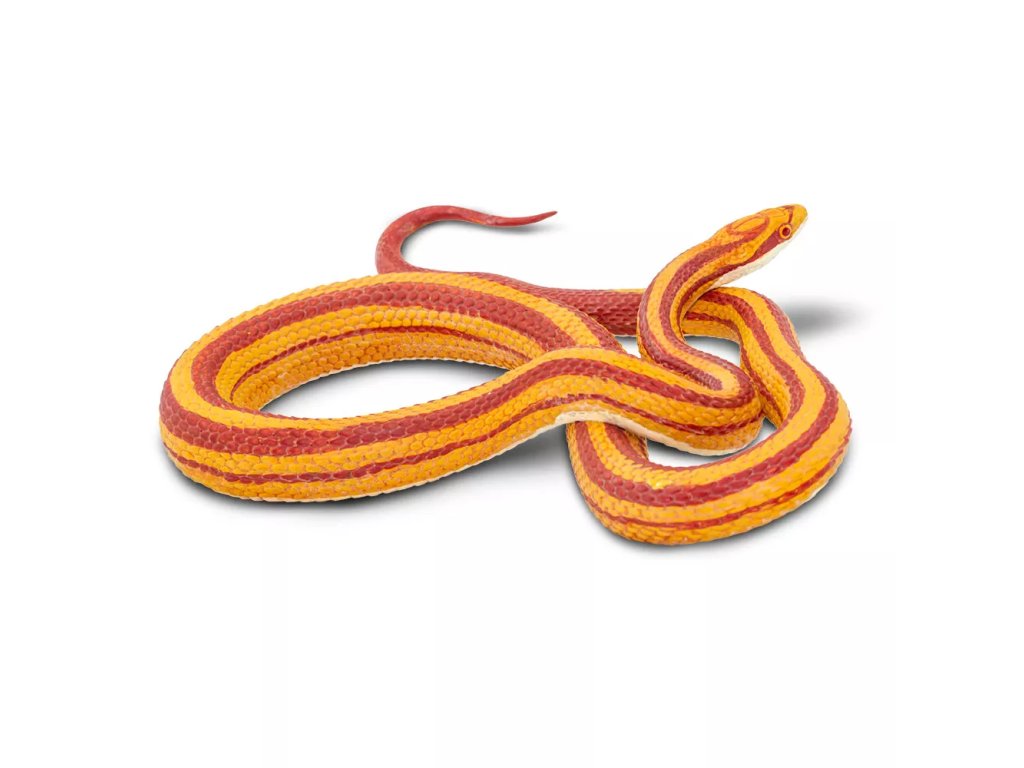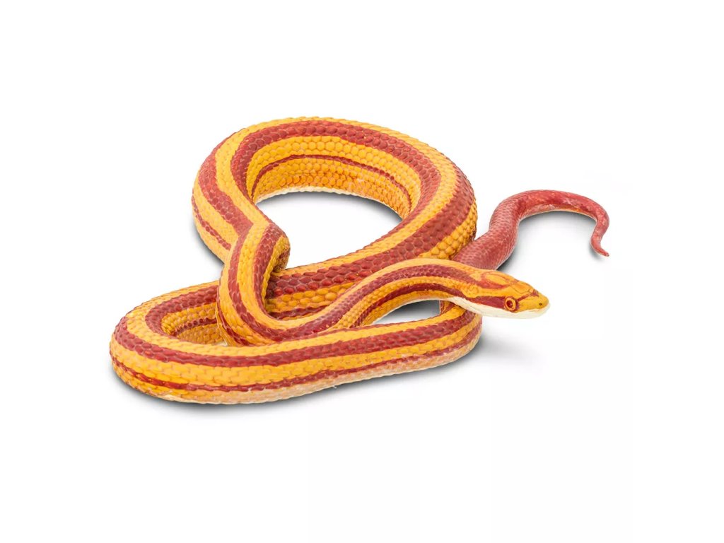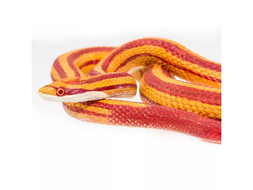 Figurka užovky červené, nejrozšířenějšího a nejoblíbenějšího domácího hada, nejedovatého obratlovce, divoce žijícího v jižních oblastech Severní Ameriky. Její zbarvení je ve většině případů do červena, oproti tomu její spodní část je bílá s černou "šachovnicí".