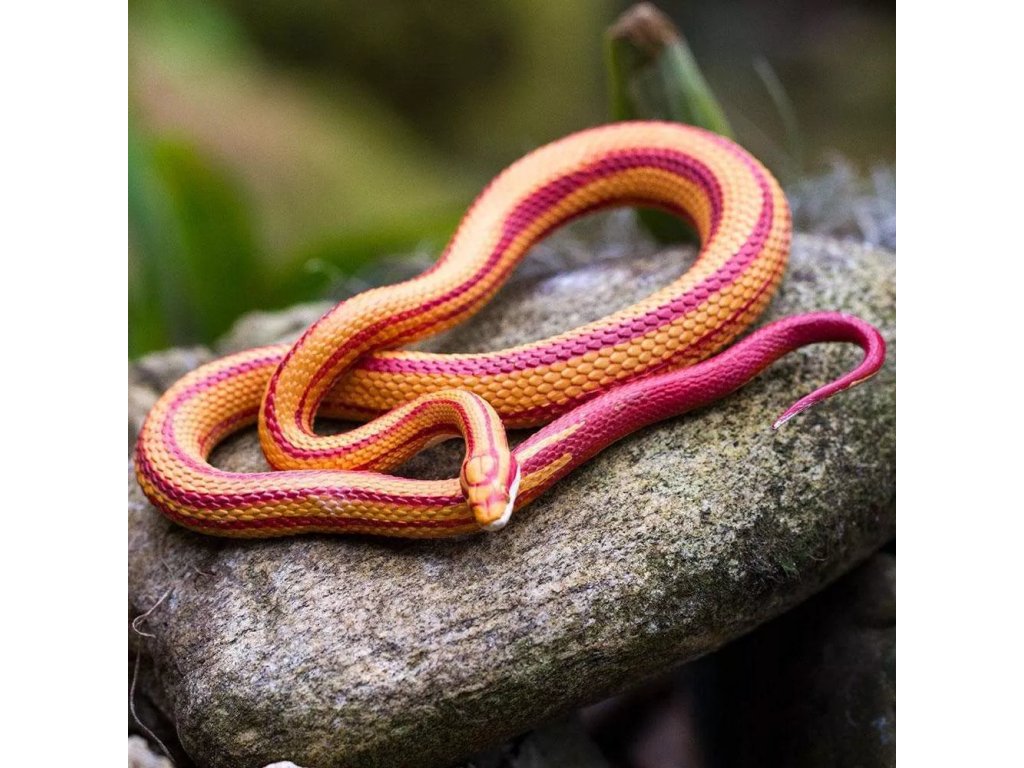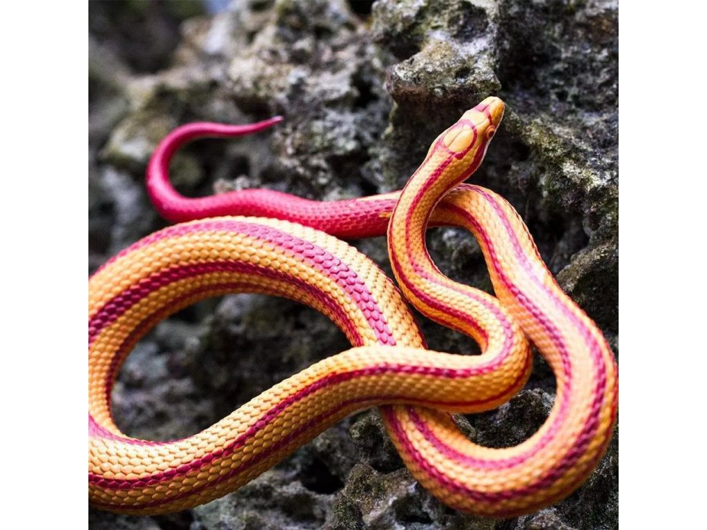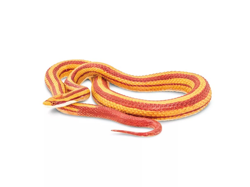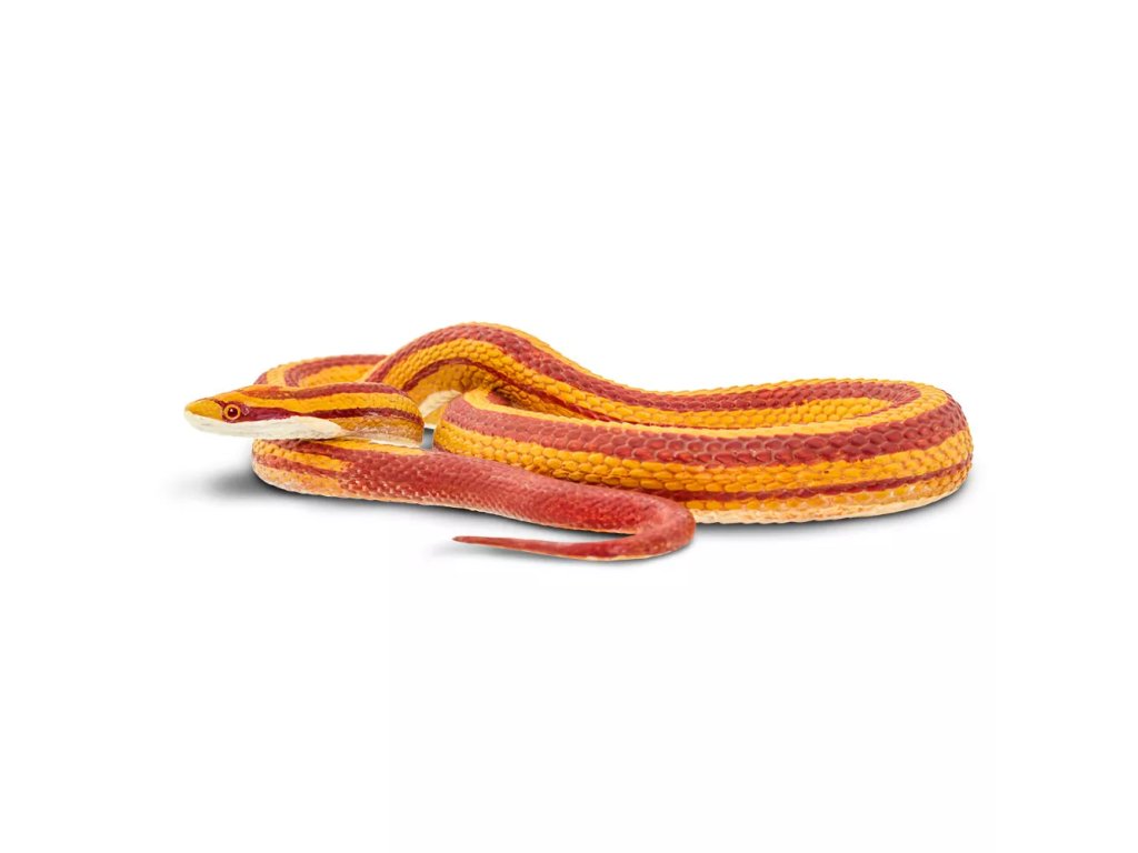 Figurka užovky červené, nejrozšířenějšího a nejoblíbenějšího domácího hada, nejedovatého obratlovce, divoce žijícího v jižních oblastech Severní Ameriky. Její zbarvení je ve většině případů do červena, oproti tomu její spodní část je bílá s černou "šachovnicí".