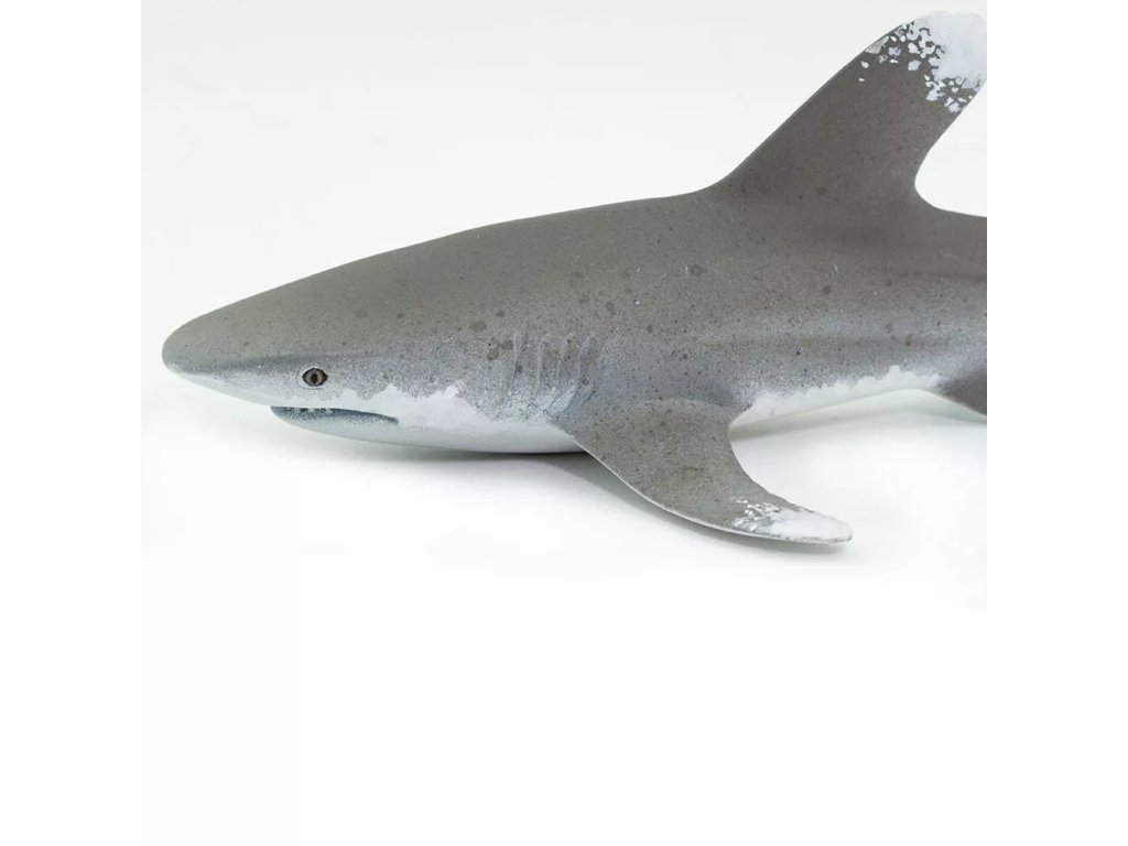 Figurka žraloka dlouhoploutvého, vyskytujícího se v mořích a oceánech tropického a subtropického pásu. Je považován za čtvrtého nejnebezpečnějšího žraloka vůbec. Maximální délka tohoto žraloka je uváděna zhruba 4m, hmotnost pak 400 kg. Živí se převážně rybami, želvami, zdechlinami savců, či ptáky. Agresivní žralok dlouhoploutvý upřednostňuje hluboké vody, ale občas je viděn i u pobřeží. Jeho nejvýraznějším znakem jsou křídelnaté prsní a hřbetní ploutve, které jsou mnohem větší, než u ostatních druhů.