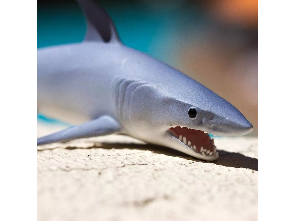 Figurka žraloka mako, velkého druhu žraloka, který je zároveň tím nejrychlejším. Dokáže plout rychlostí až 70km/hod. Tento velmi mrštný žralok je specifický svými ostrými zuby, které jsou uzpůsobené k chytání kořisti. Vyčnívají žralokovi ven z tlamy.
