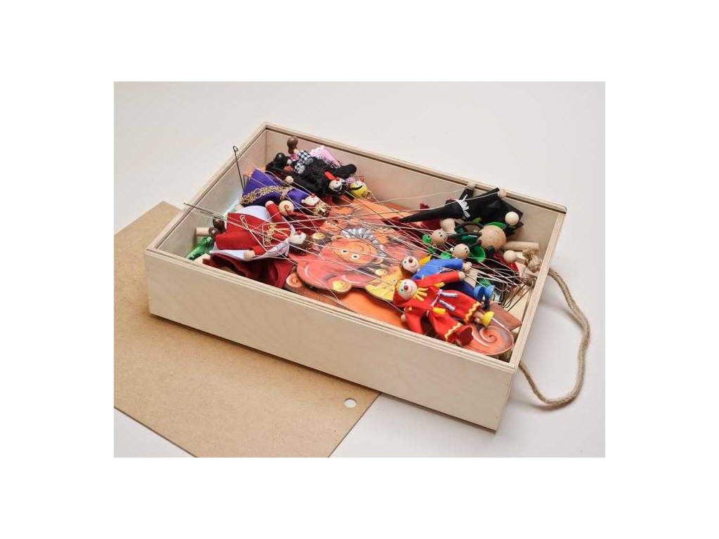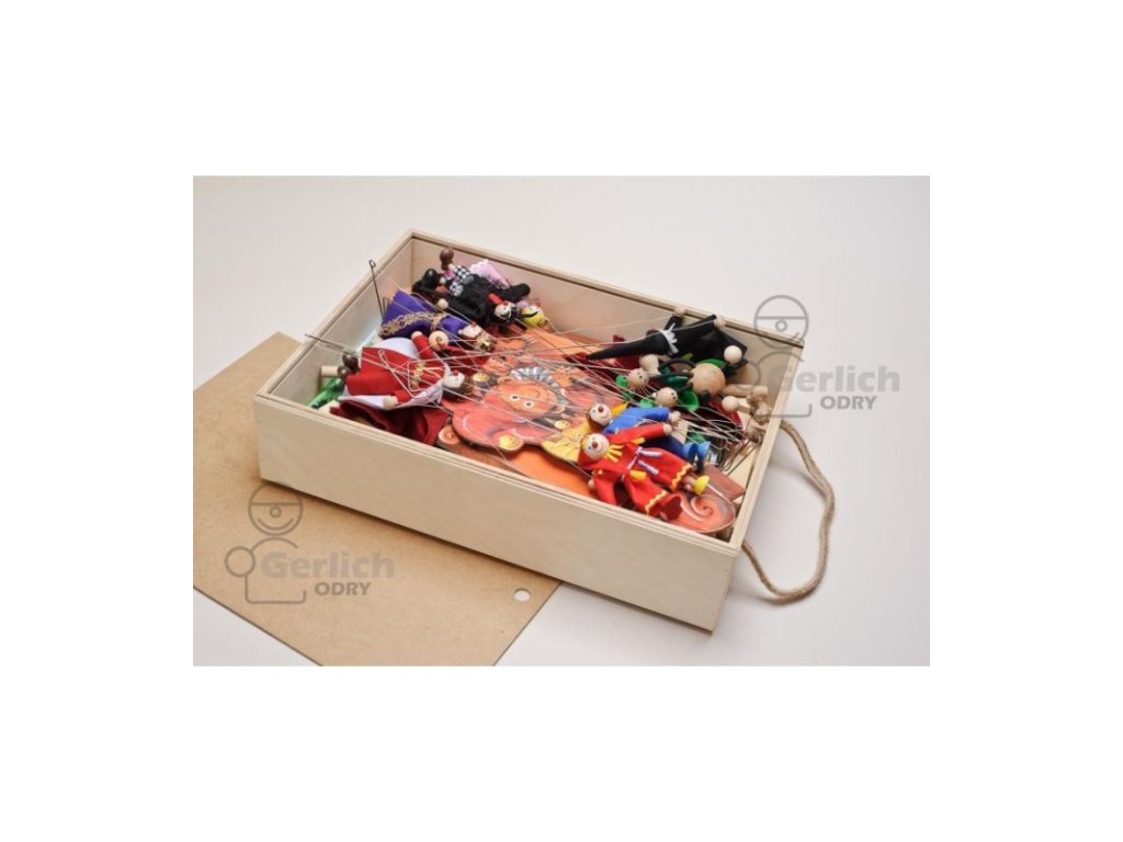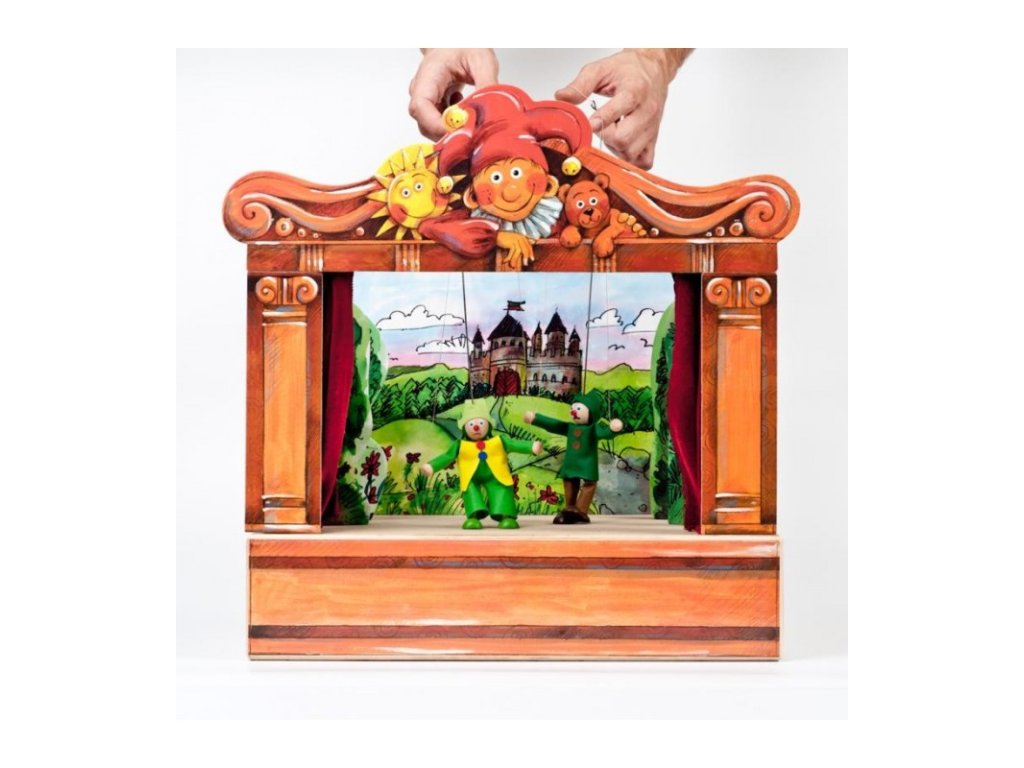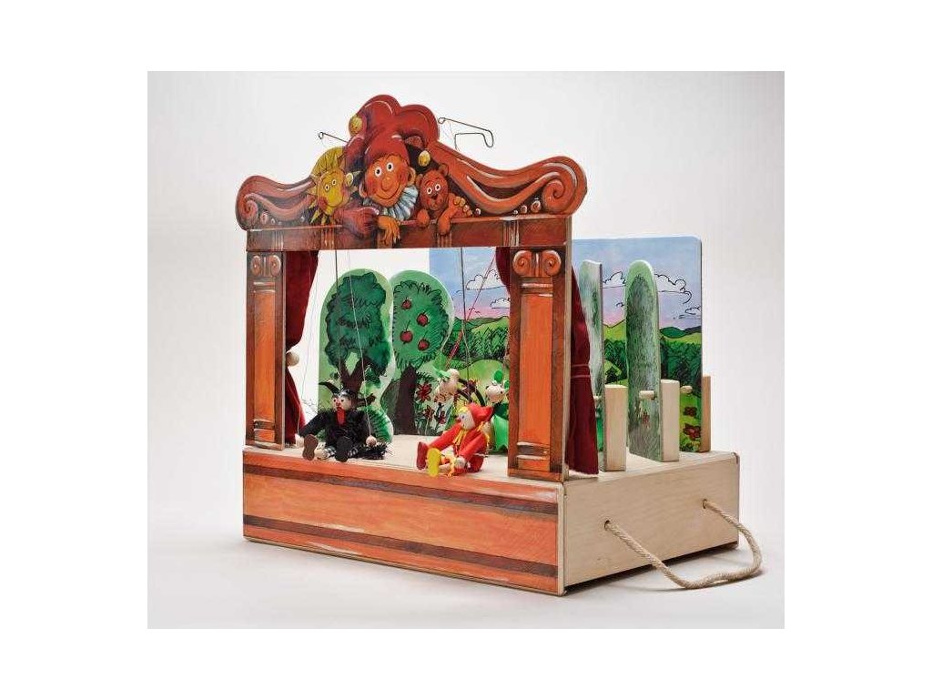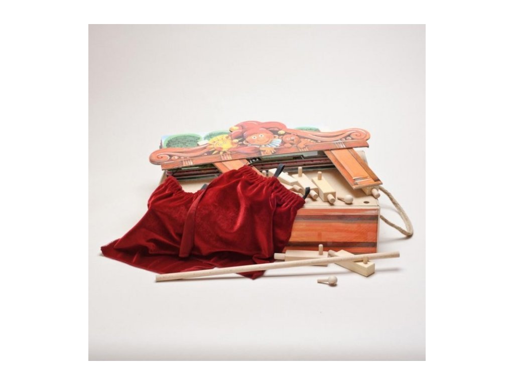 Půvabné dřevěné loutkové divadlo pro vaše děti. Ponořte se spolu s dětmi do světa nejznámějších českých pohádek. Vhodné pro děti od 3 let. Krásně propracované dřevěné loutkové divadlo s jednotlivými loutkami, probudí u Vašich dětí fantazii, posílí paměťové a výrazové schopnosti. Velikost loutkového divadla: 46 x 41 x 32 cm Velikost loutky: 12-15 cm Sestava obsahuje dřevěnou krabici, 8 dřevěných loutek, 4 scény, proscenium s veselým kašpárkem a oponu. Loutky se mohou lišit v barevných detailech. Obsahuje oboustranné kulisy: Na zámku / Před zámkem U jeskyně / V pekle Obsahuje loutky: Král Ferdinand Královna Alžběta Princezna Anička Princ Slavomír Tříhlavý drak Čertík Bruno Čaroděj Vilém Kašpárek Celá loutková sestava je zabalena v praktickém dřevěném kufříku s posuvným víkem. Hlavní vlastnosti: Dřevěné divadlo s 2 oboustrannými kulisami a 8 loutkamiRučně vyráběné loutkyRozměry hlavní scény jsou 40x23 cm, rozměry bočních kulis jsou 9,5x23 cmDivadlo lze rozšířit o další loutky a kulisy