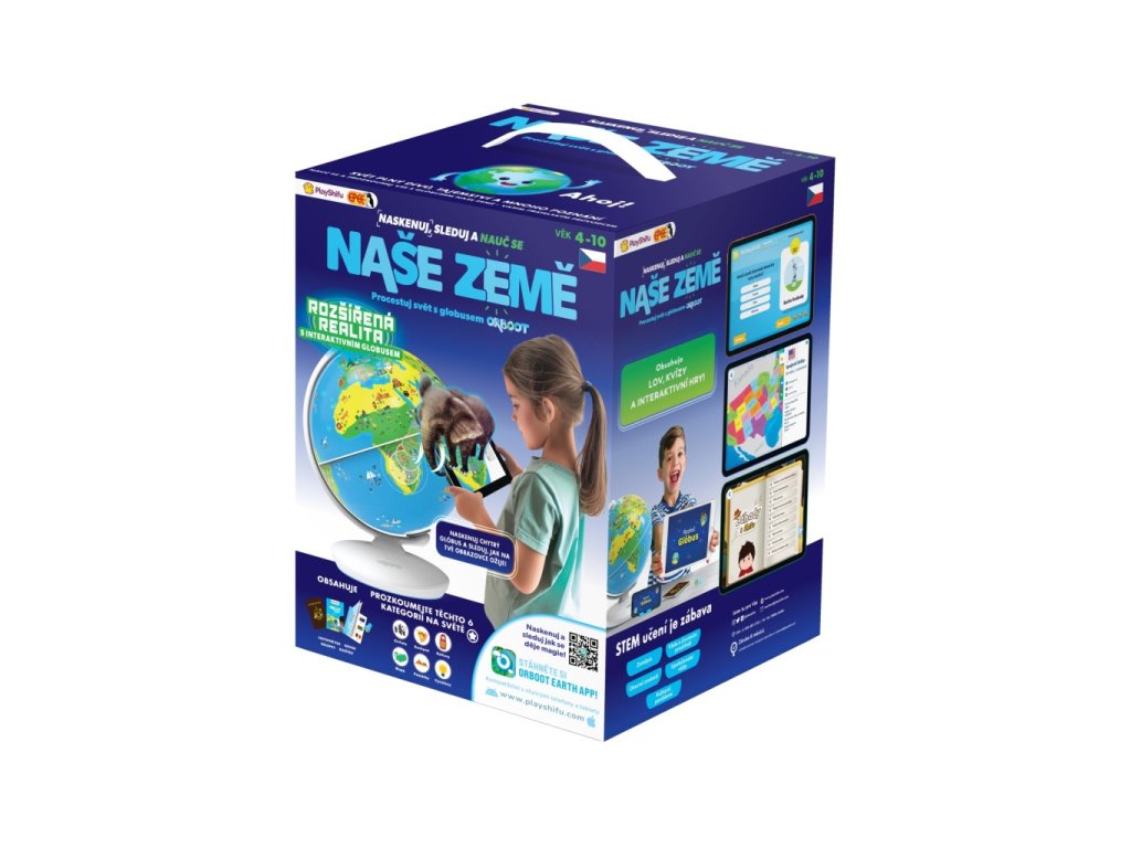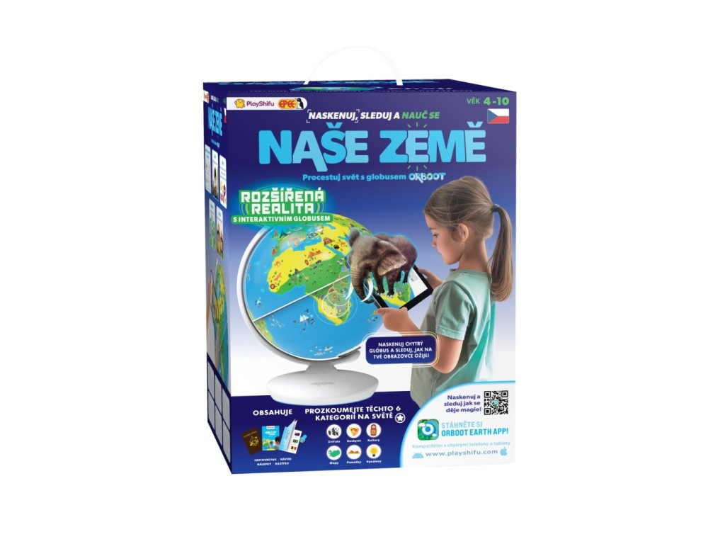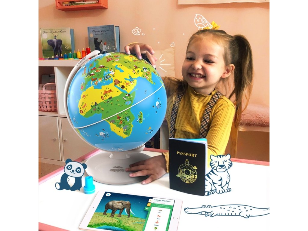 Interaktivní Globus, se kterým se dozvíte mnoho nových věcí a užijete spoustu zábavy. Prozkoumejte více než 400 zajímavostí a více než 1000 faktů napříč 6ti kategoriemi – kultura, kuchyně, památky, vynálezy, zvířata a mapy. Pomocí vašeho zařízení a prostřednictvím stažené aplikace můžete prozkoumat svět. V balení naleznete Globus, krátký návod, cestovní pas, knížku s nálepkami a razítko. Hračka nevyžaduje baterie. Doporučený věk 4 roky.