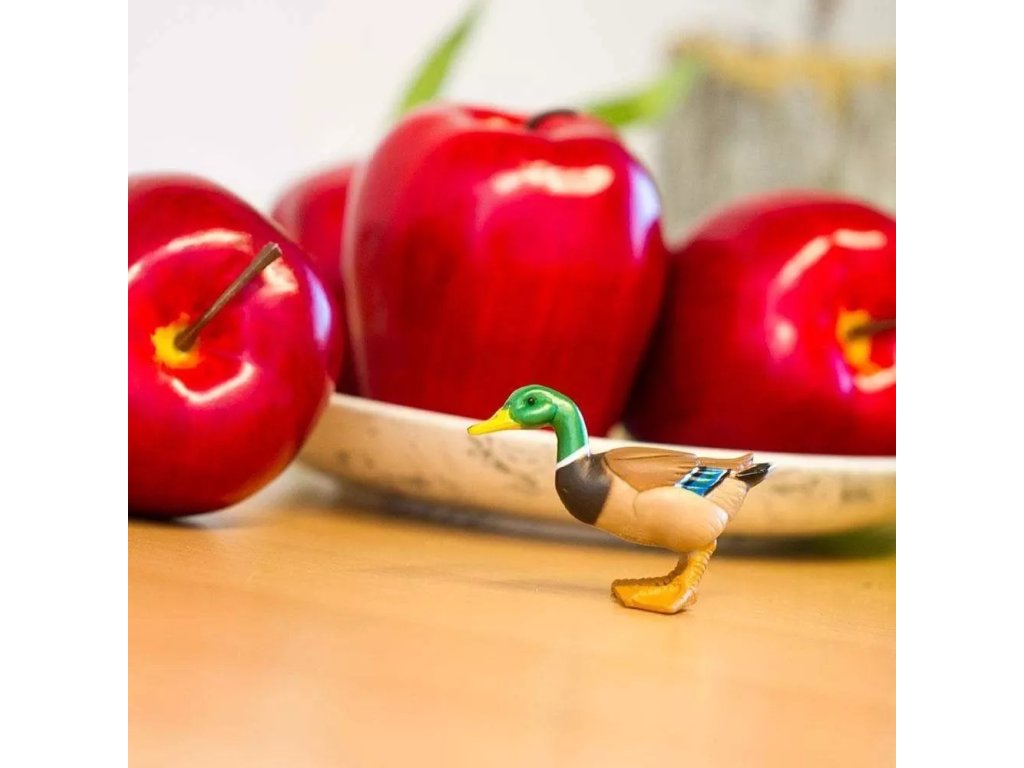 Replika velice oblíbené a rozšířené kachny se zelenou hlavou a modrými konci křídel.