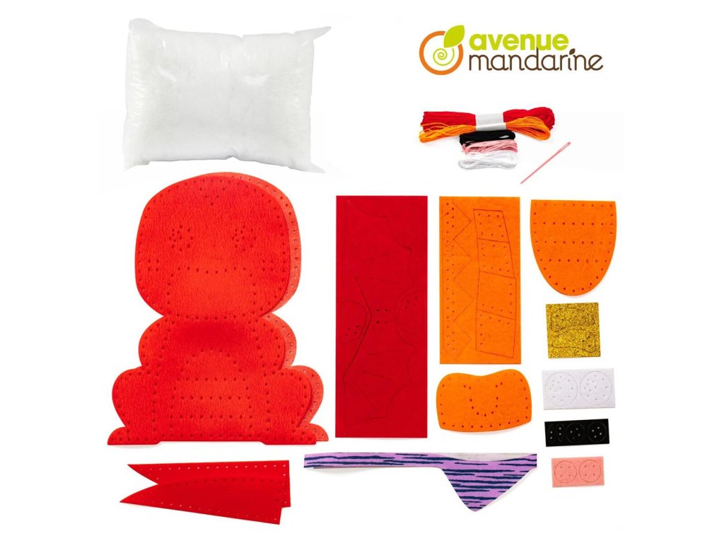 Kreativní sada Avenue Mandarine Dětské šití z kolekce Couz'IN, která umožňuje dětem objevení světa šití. Předem nastříhané kusy měkké barevné plsti s malými otvory usnadňují dětem použití jehly.