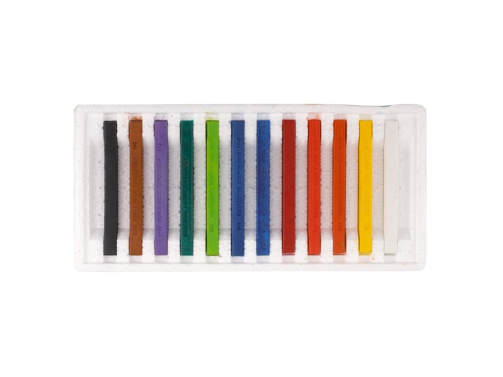 12 ks souprava uměleckých tvrdých hranatých olejových kříd o rozměru 7 x 7 x 75 mm zabalené v kartonové krabičce. Křídy jsou určeny umělecké a hobby kreslení. Silně pigmentované s vysokou světlostálostí a hladkou stopou. Možnost kresby širších čar a kresby plochou křídy.