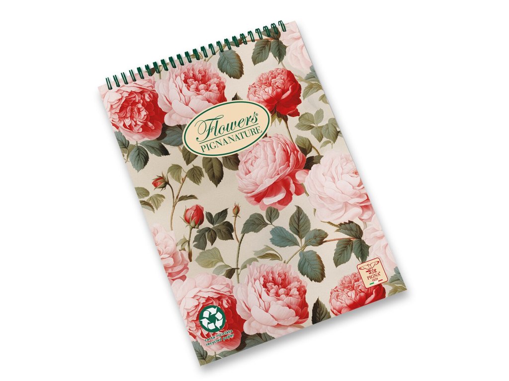 Kroužkový blok Pigna Nature Flowers - A5, čtverečkovaný, 50 listů, mix motivů